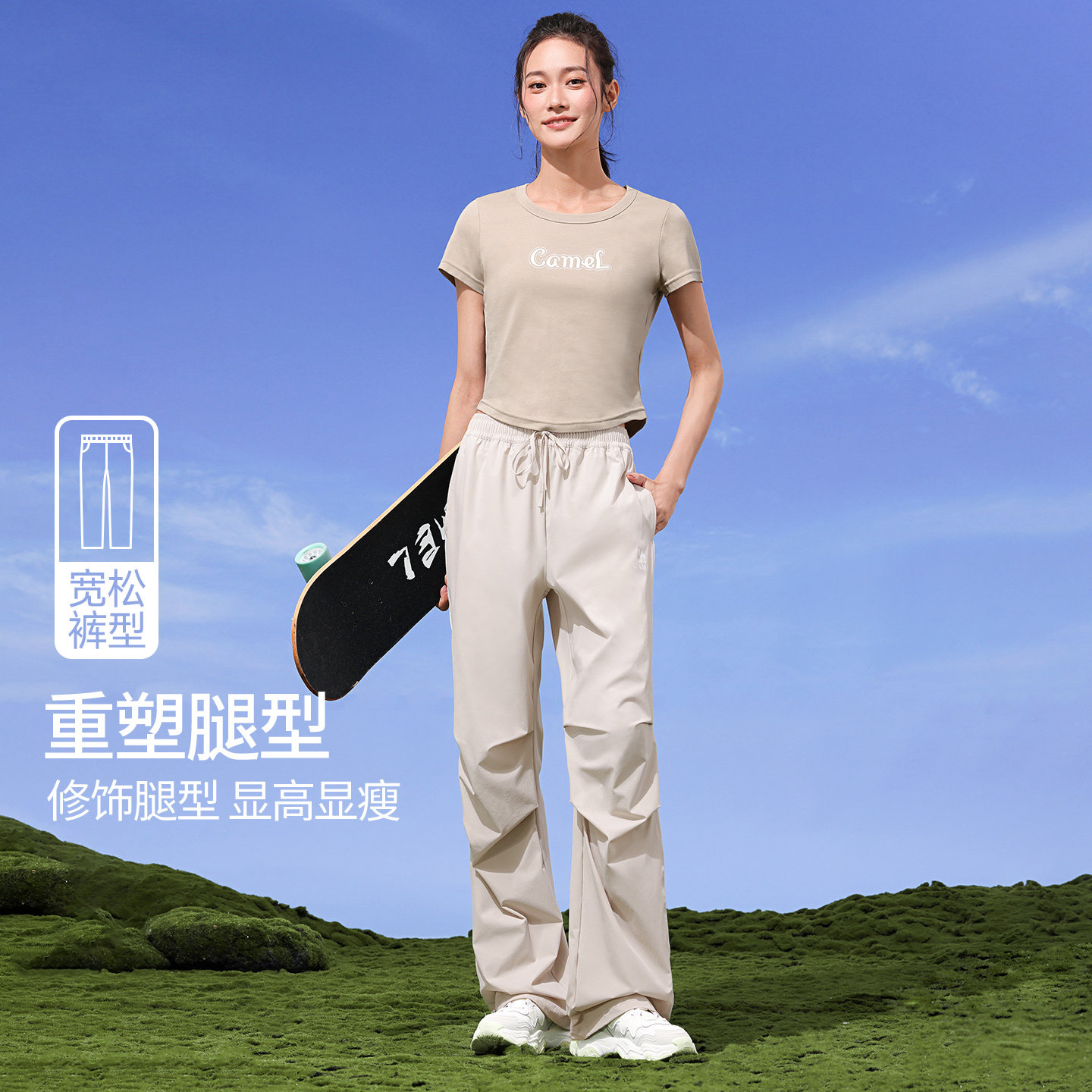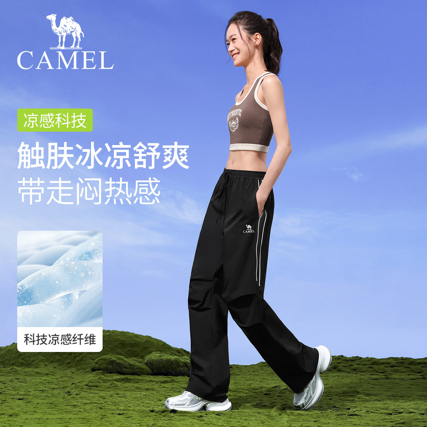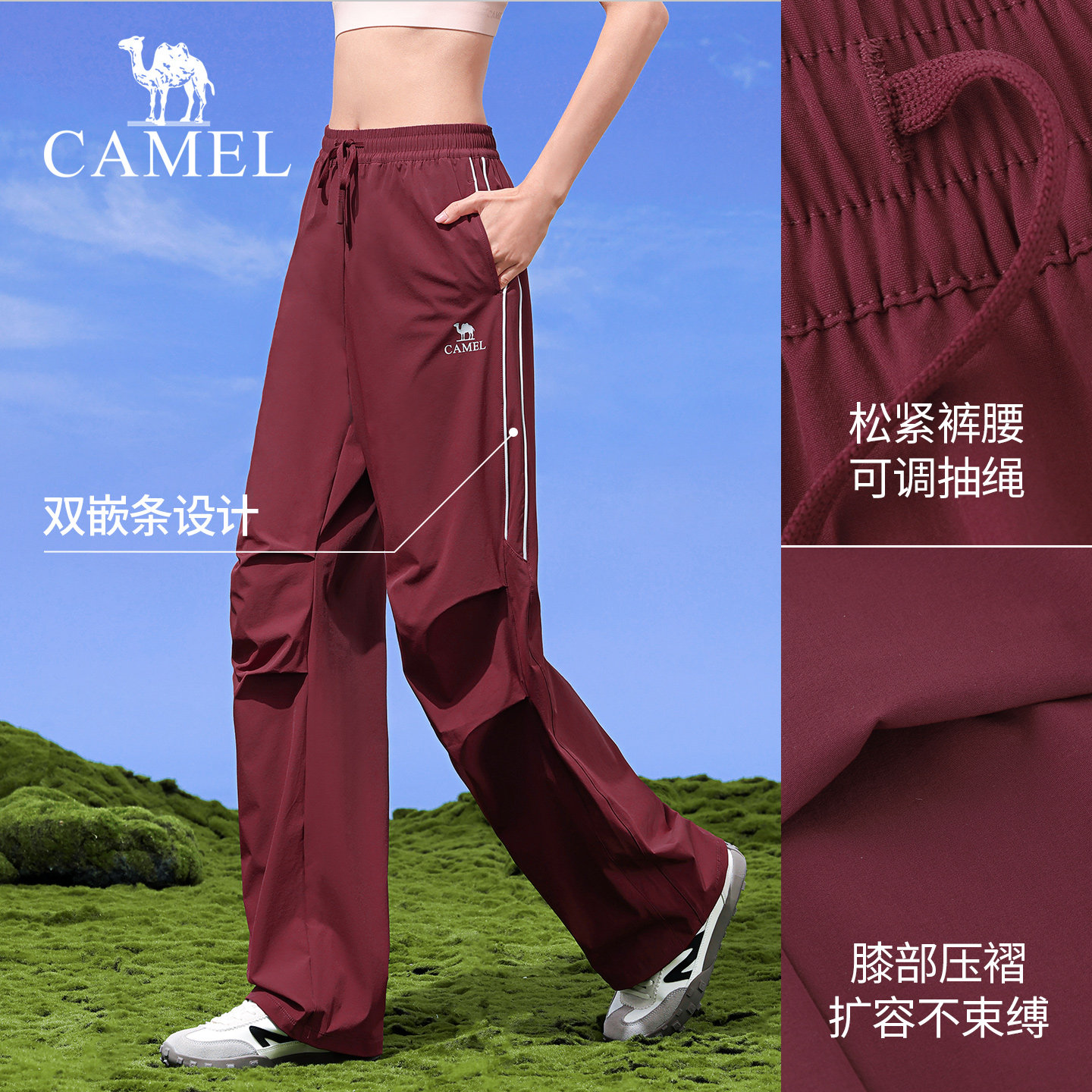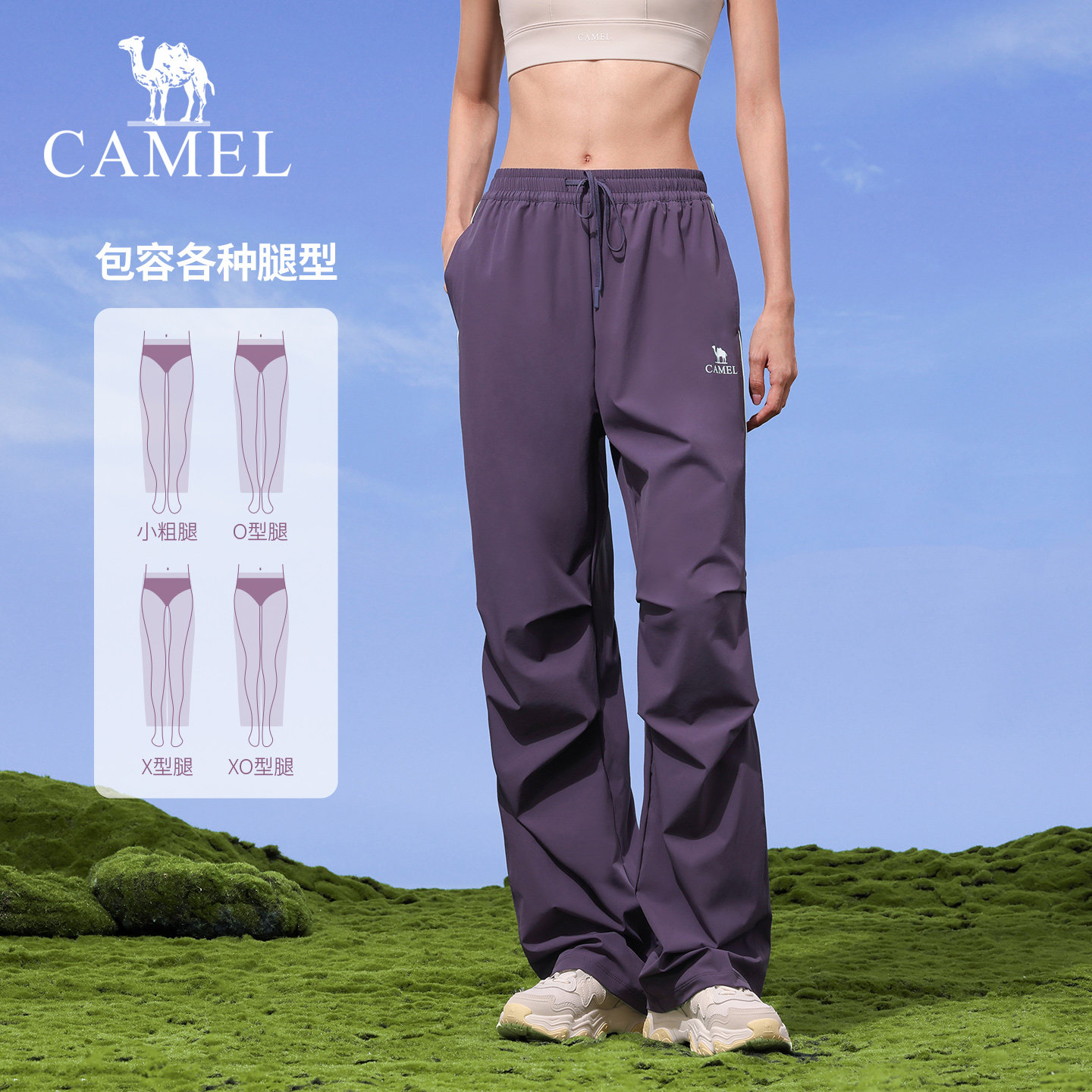 骆驼伞兵裤女春季防晒徒步户外裤紫色透气宽松运动裤登山冲锋长裤