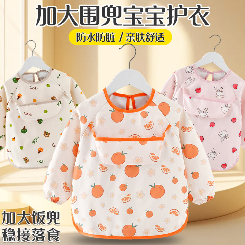 儿童宝宝吃饭罩衣围兜长袖防水反穿护衣婴幼儿园辅食饭兜外穿薄款
