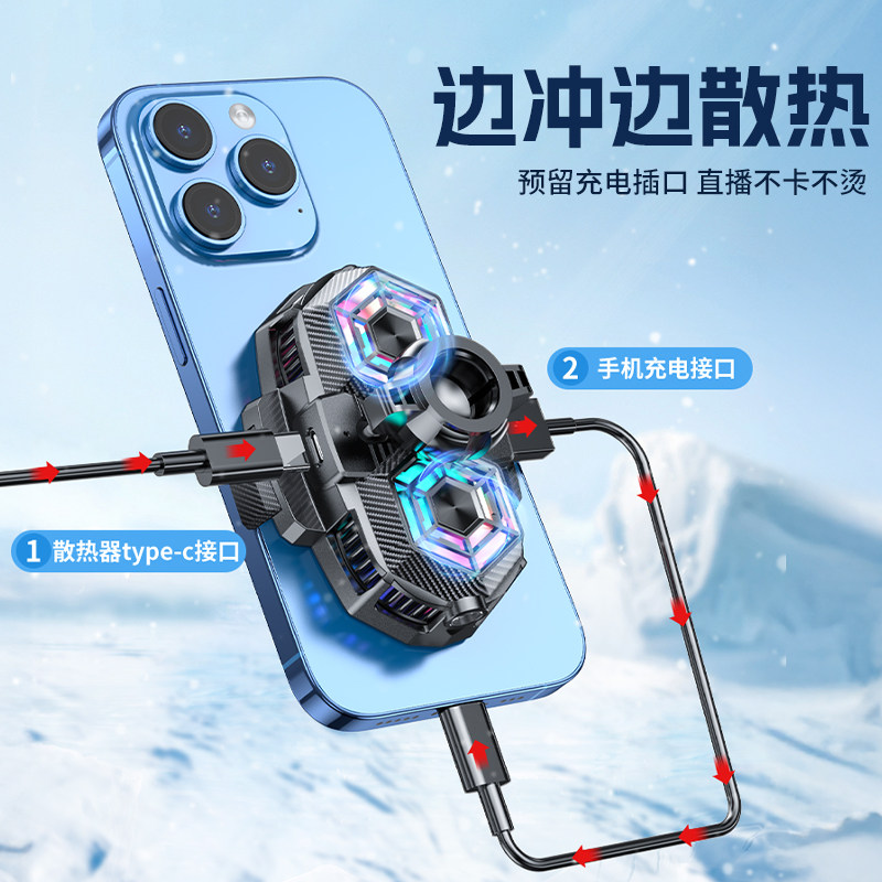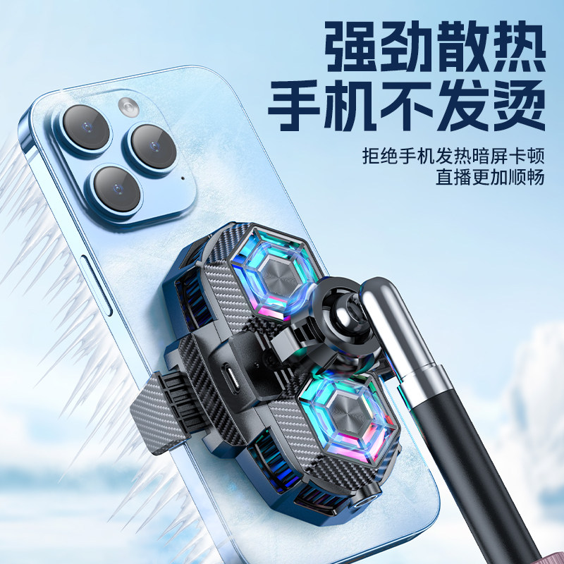 手机散热器半导体制冷双风扇降温17mm通用球头桌面直播专用拍视频静音大面积制冷金属补光灯落地三角支架通用