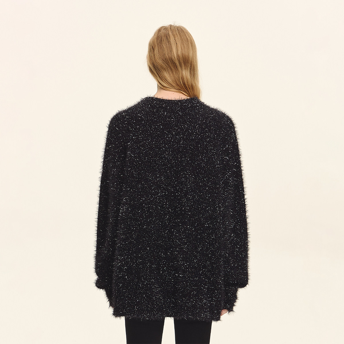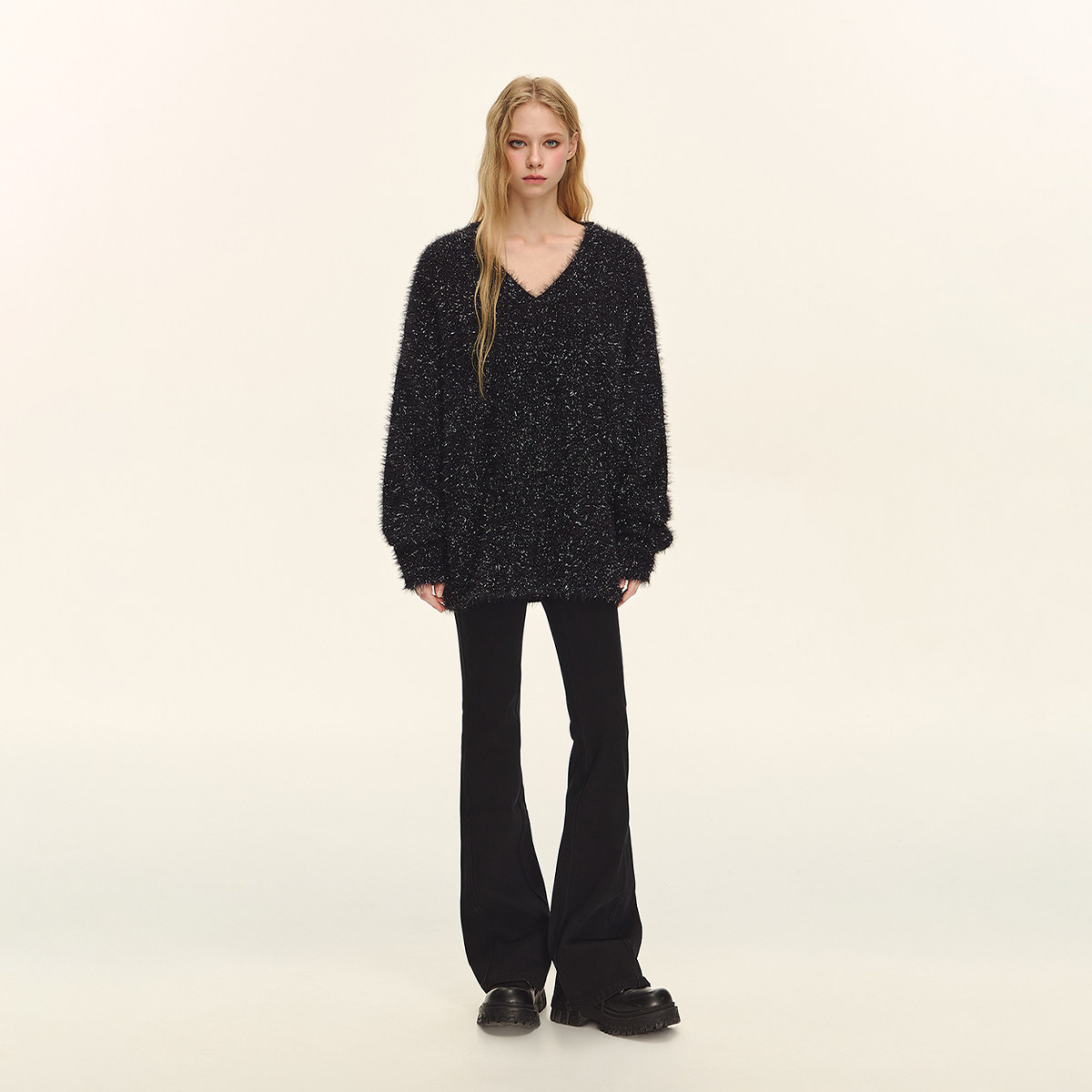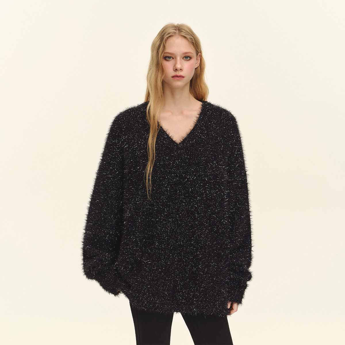 CLIMAX VISION满天星闪耀银丝仿貂毛纱线V领慵懒风毛衣女针织衫