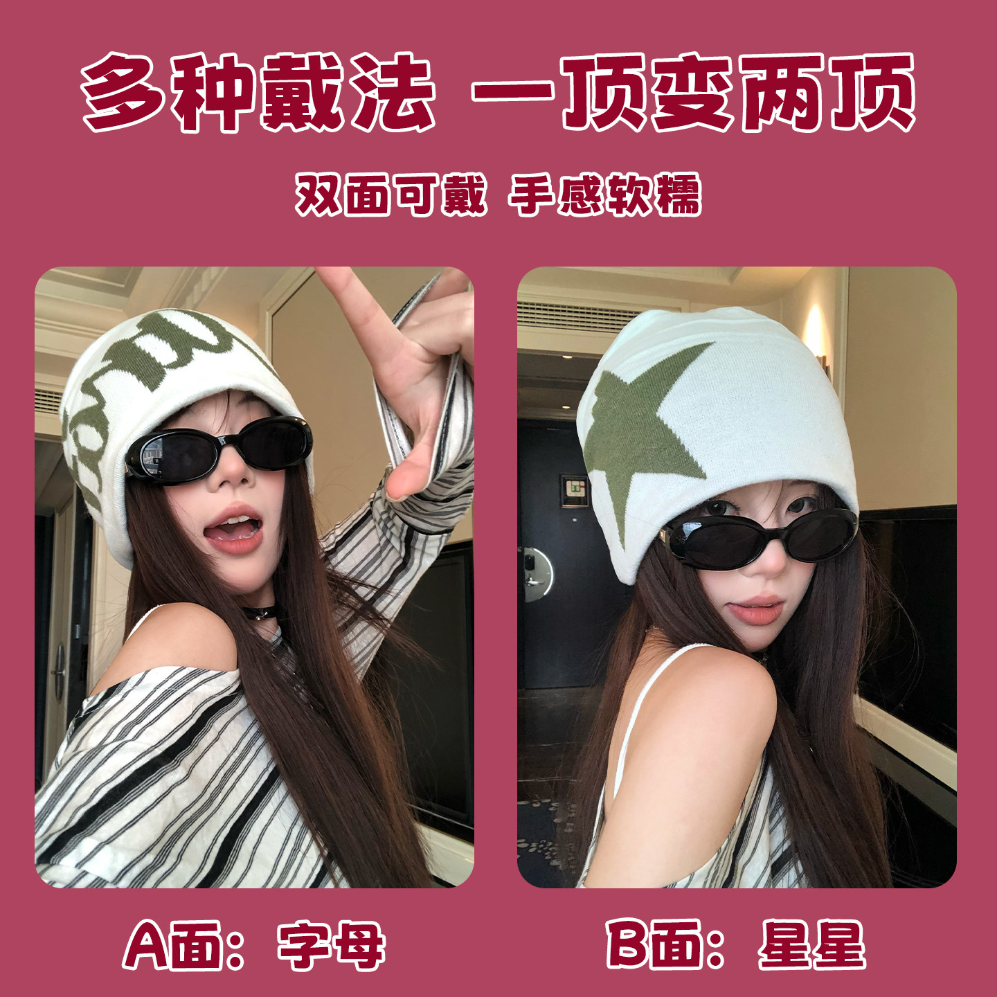 美式街头字母提花双面戴针织帽男女嘻哈滑板护耳套头帽秋冬冷帽潮