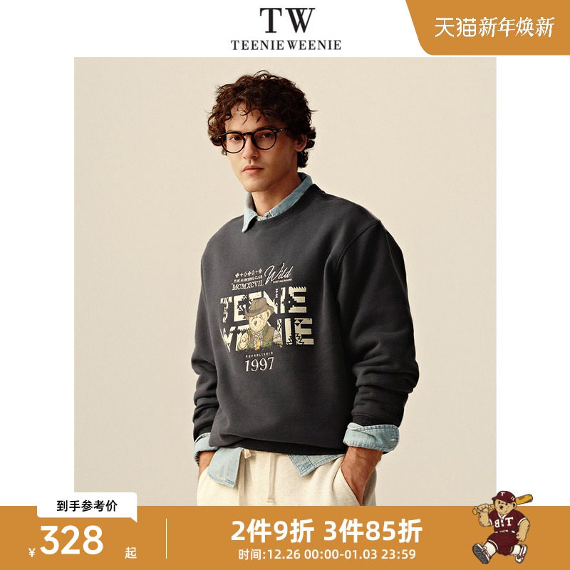 Teenie Weenie小熊男装宽松熊印花复古舒适简约日系慵懒风卫衣