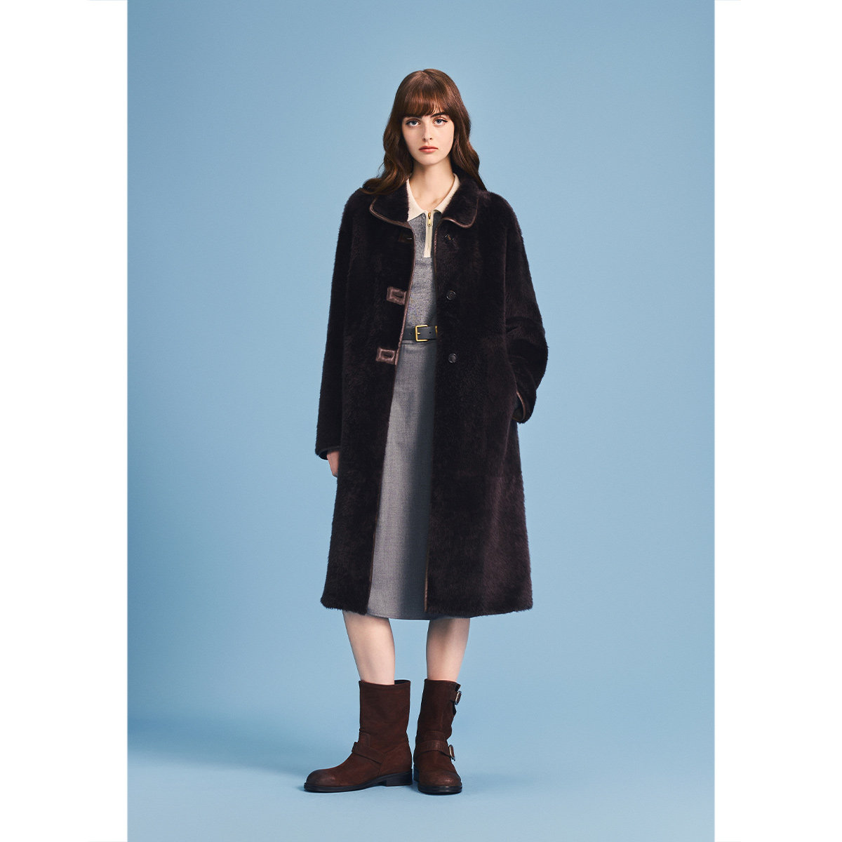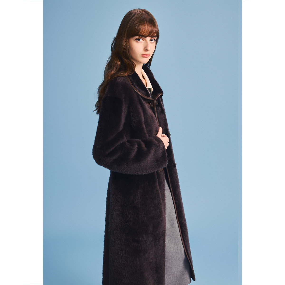 诗篇专选皮毛一体长款过膝收腰皮草大衣外套2026春季新款