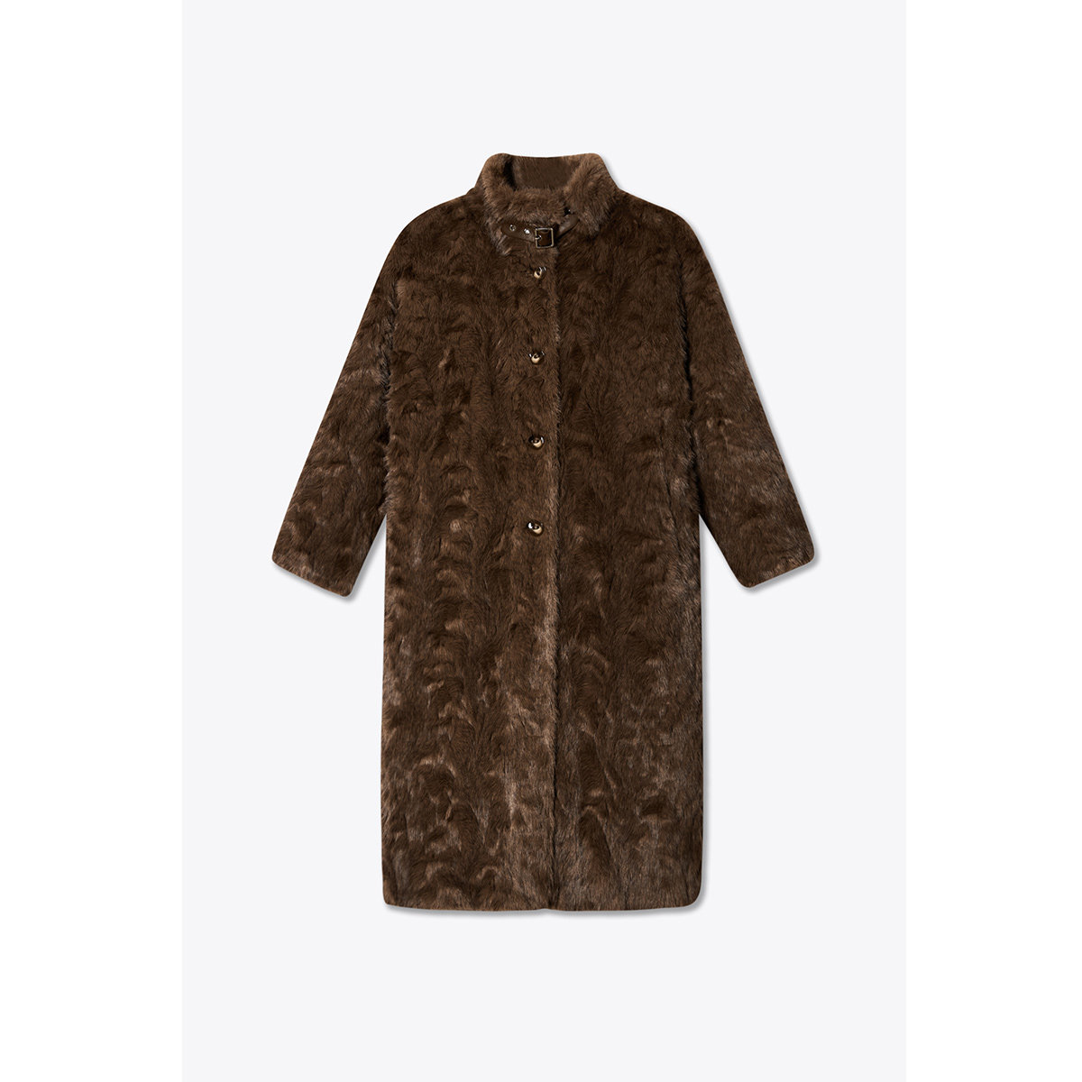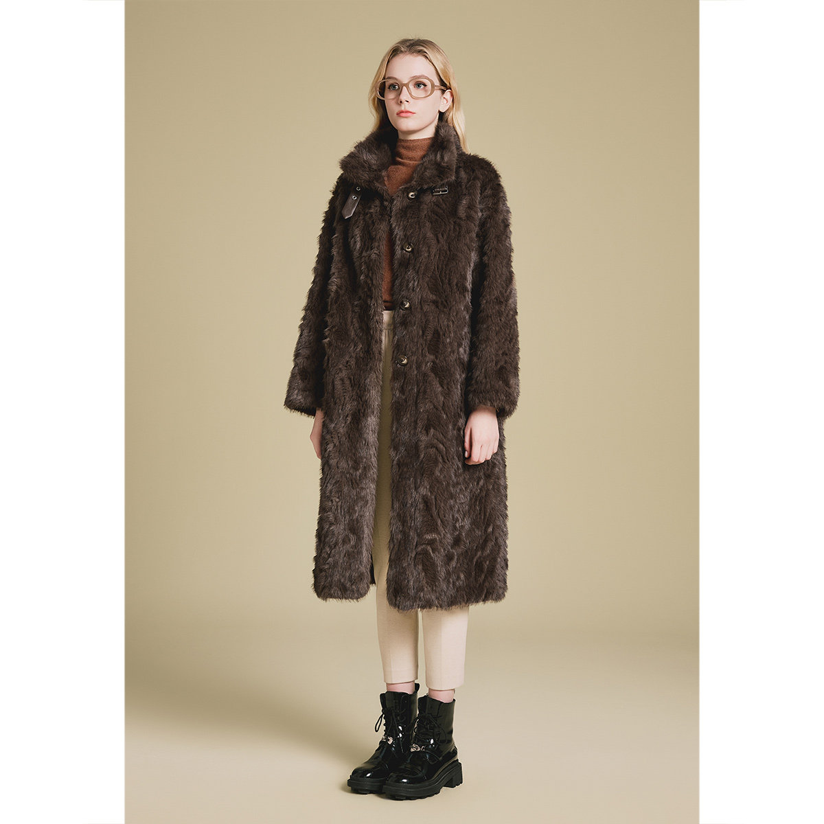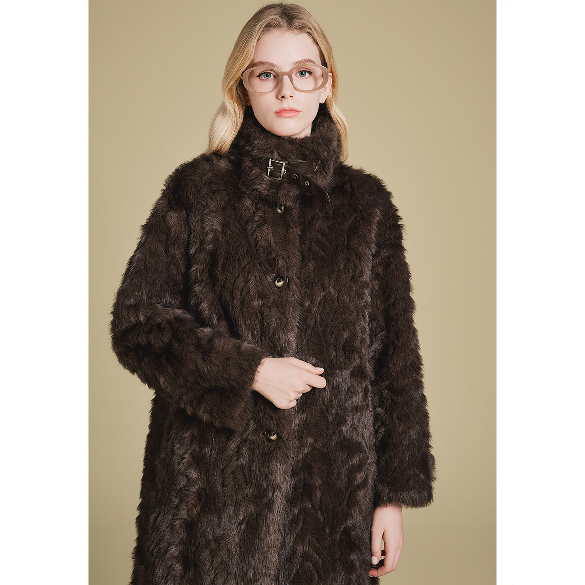 PSALTER诗篇美拉德时尚宽松皮袢立领长款环保皮草外套冬款