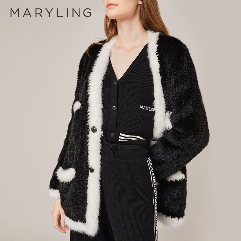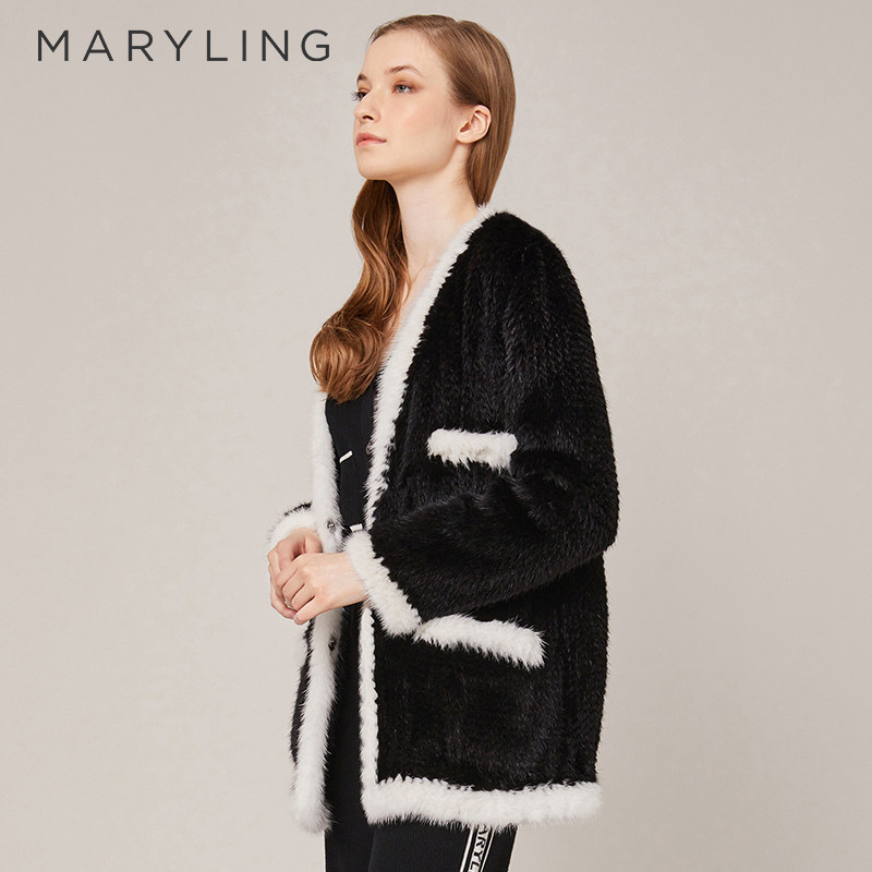 MARYLING玛俪琳2022冬季水貂毛皮保暖开衫时尚皮草外套A1BGW9Q050