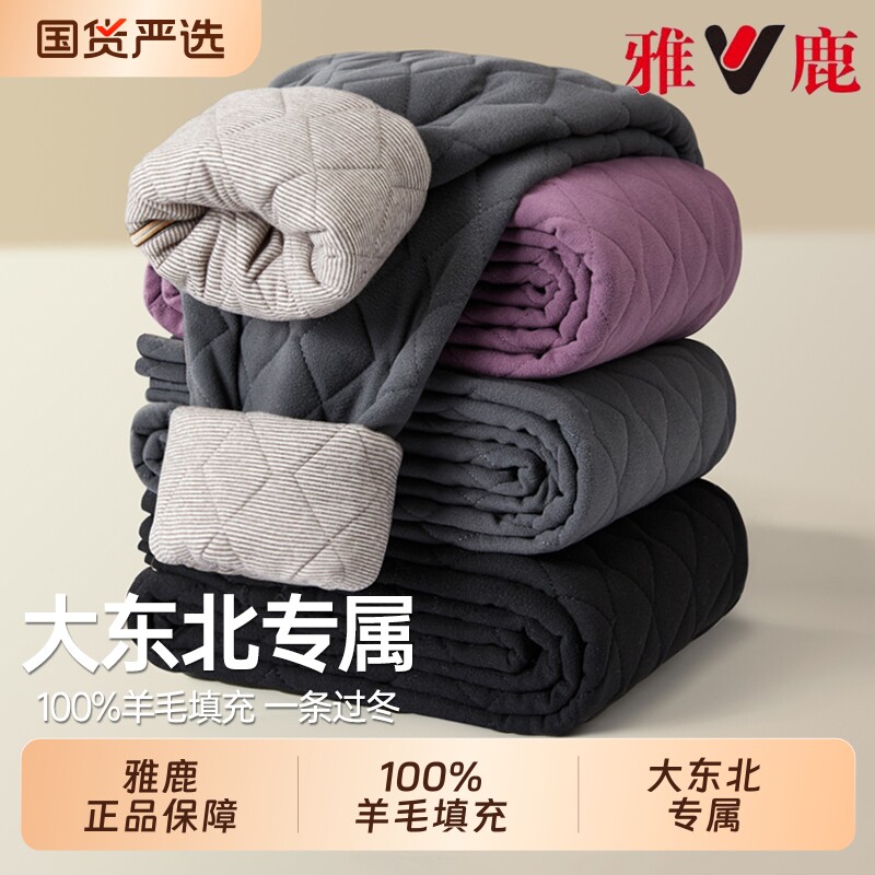 雅鹿羊毛棉裤男款零下40度东北保暖裤加绒加厚男女士秋裤子冬季
