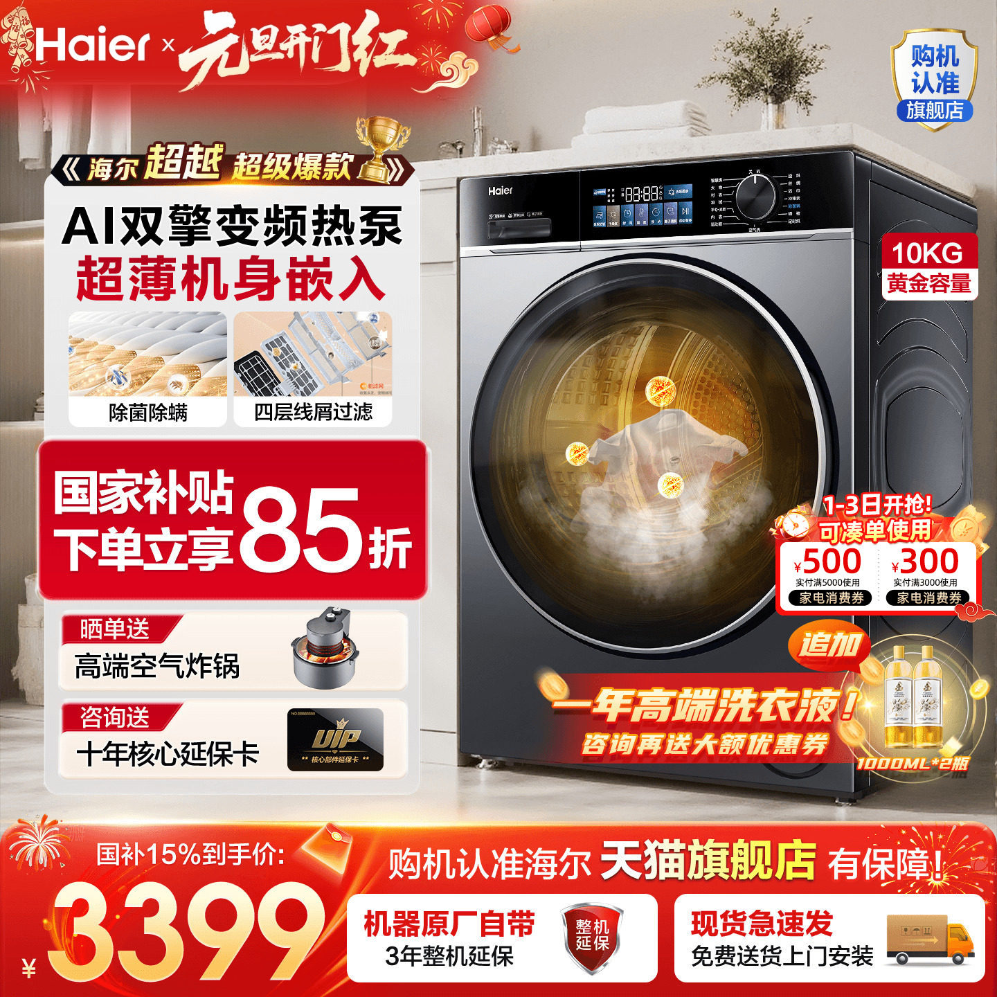 【全国补贴8折】海尔热泵烘干机53E家用全自动双擎变频10KG旗舰店