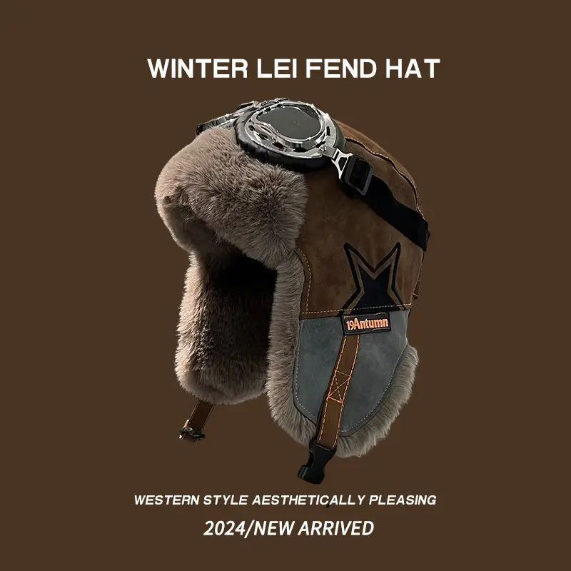 2026冬季帽子男女复古雷锋帽飞行员帽子保暖加绒护耳骑行机车帽子