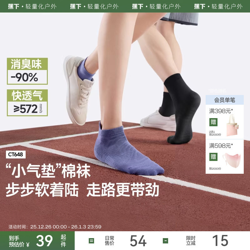 蕉下棉质中筒袜男女运动短袜吸汗抑菌防臭透气百搭新款四季袜子