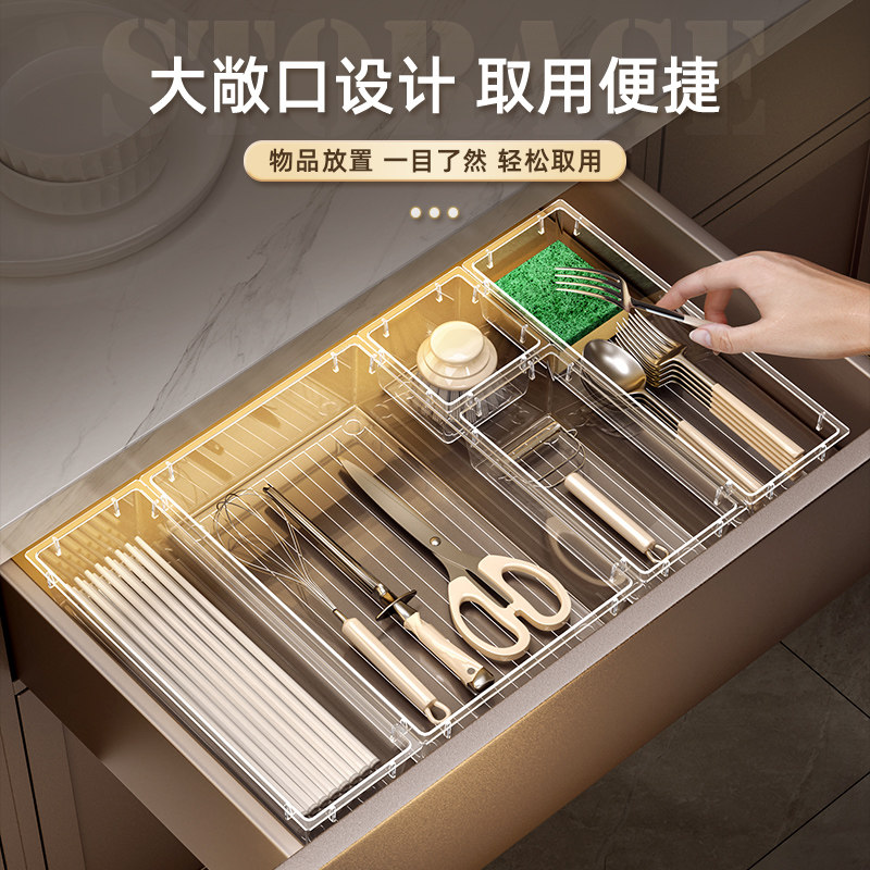 抽屉收纳分隔盒透明桌面内置整理神器工位厨房化妆品首饰零食盒子