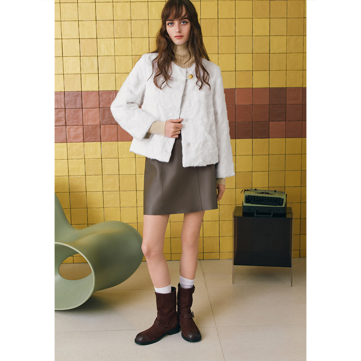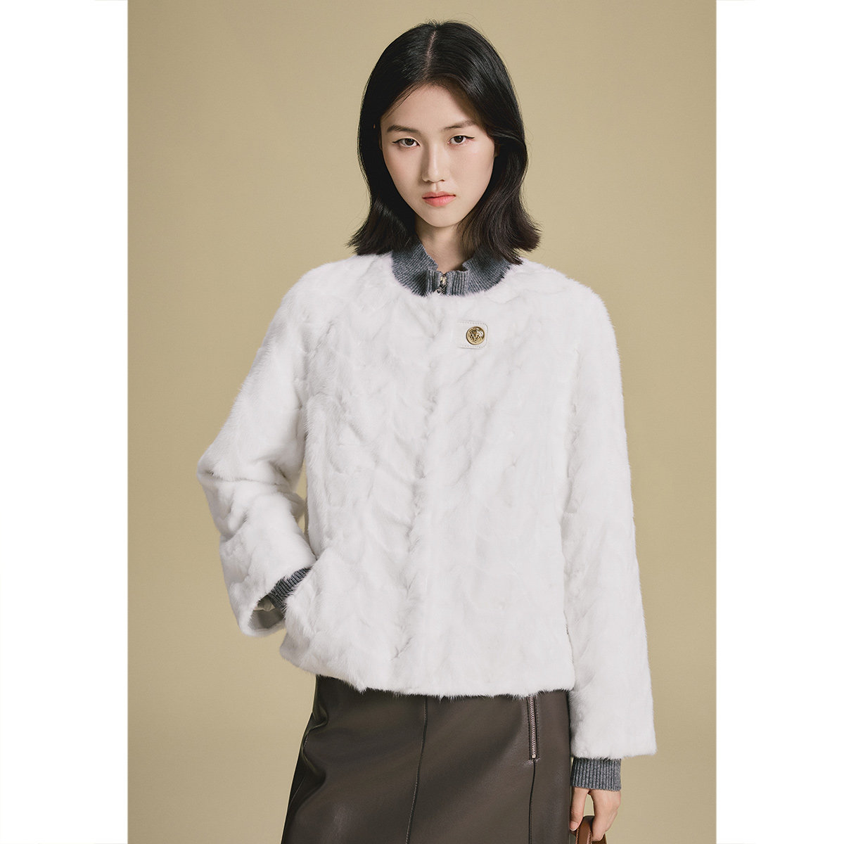 诗篇专选高奢水貂毛短箱型廓形皮草外套2025秋季新款