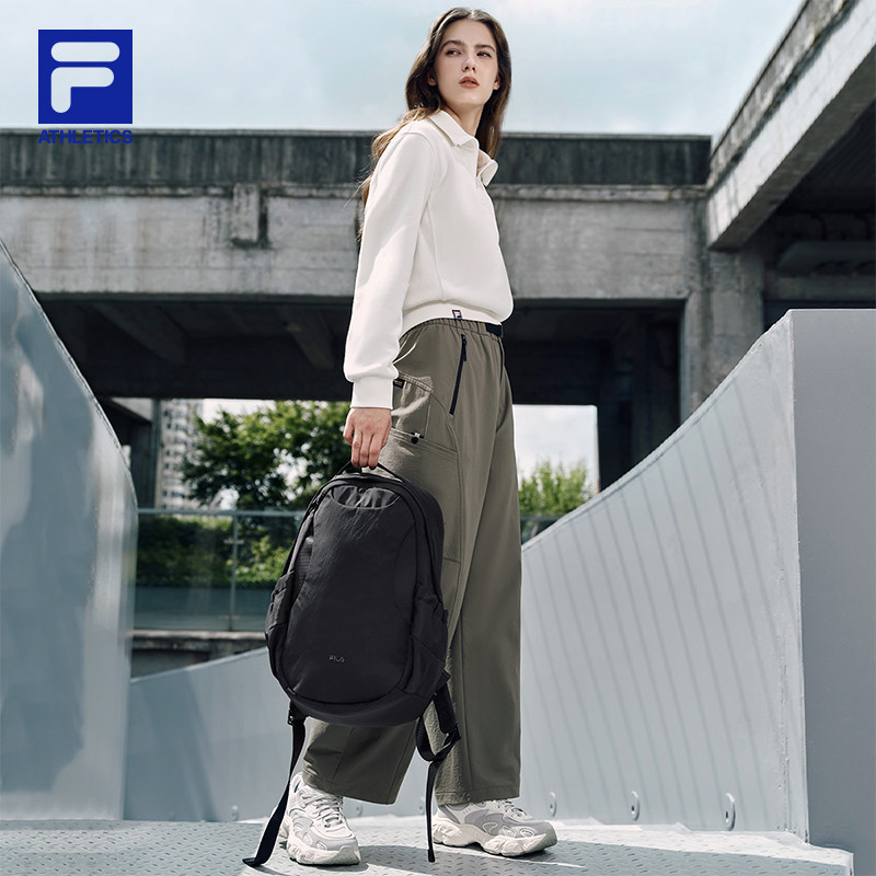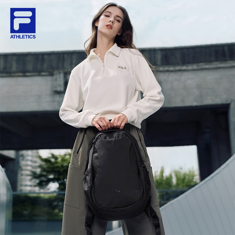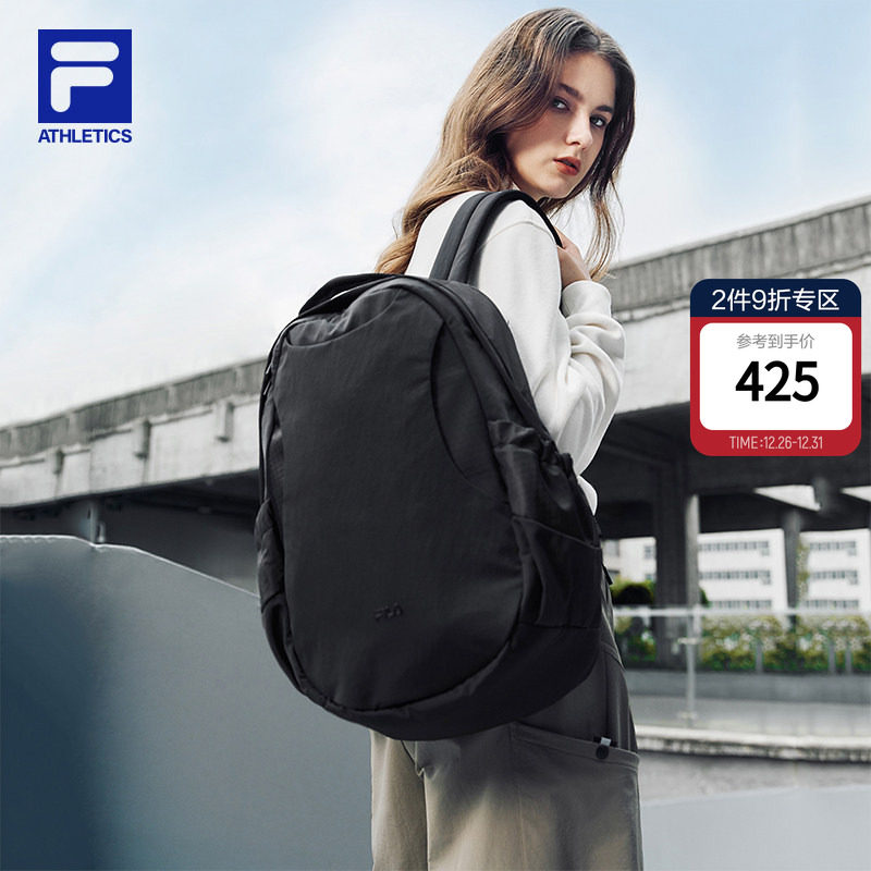 背包|FILA 斐乐官方情侣款黑色出游户外运动双肩包大容量电脑包