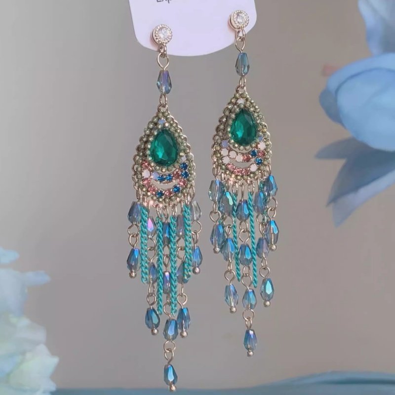 「素朵兰」波西米亚流苏耳夹无耳洞绿色耳钉耳环蚊香盘耳夹设计感