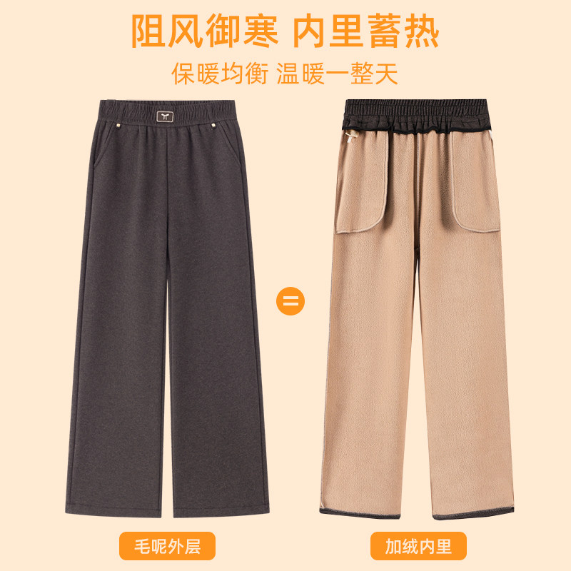 雅鹿妈妈裤子冬装加绒加厚长裤中老年人女裤休闲直筒裤春秋阔腿裤