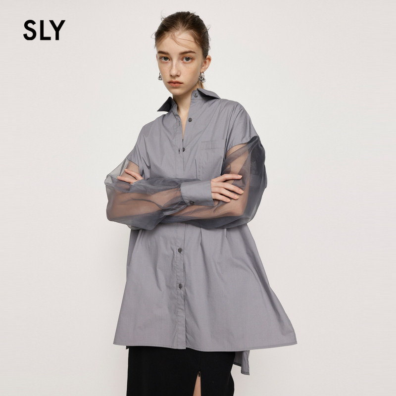 SLY 秋季半透明休闲条纹设计休闲长袖衬衫030GSZ30-2290