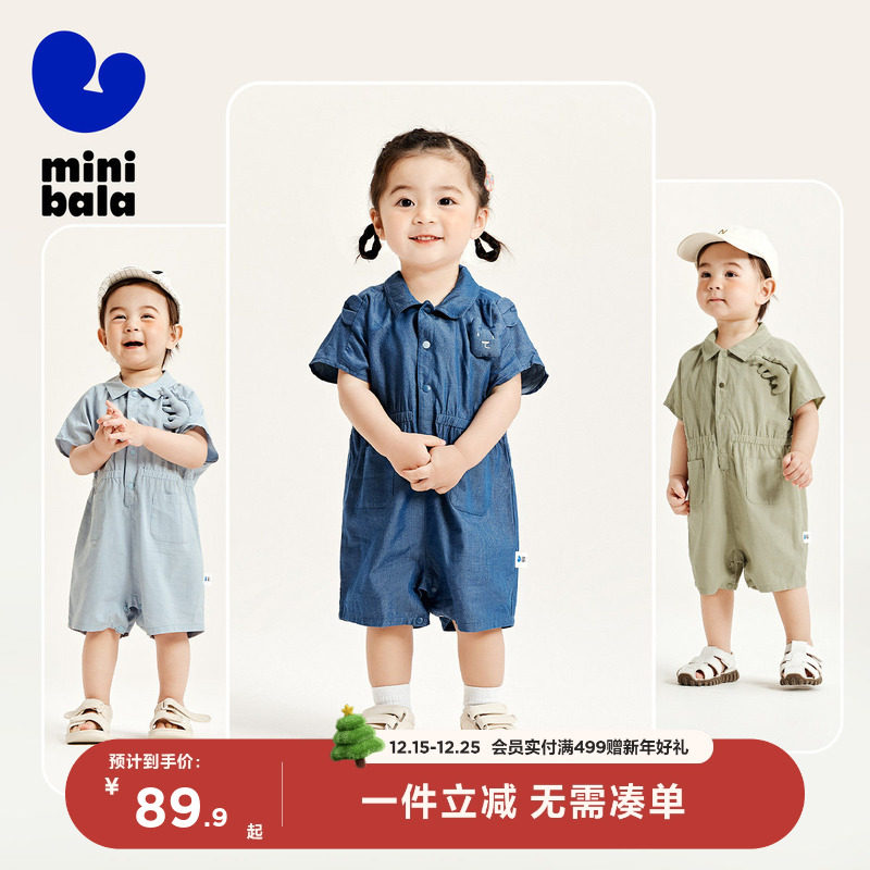 迷你巴拉巴拉短袖连体衣爬服外出宽松恐龙设计感宽松婴儿衣服