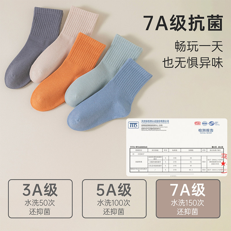 男童袜子春秋款棉袜大童儿童袜7A抗菌防臭A类秋冬中筒袜纯棉白色