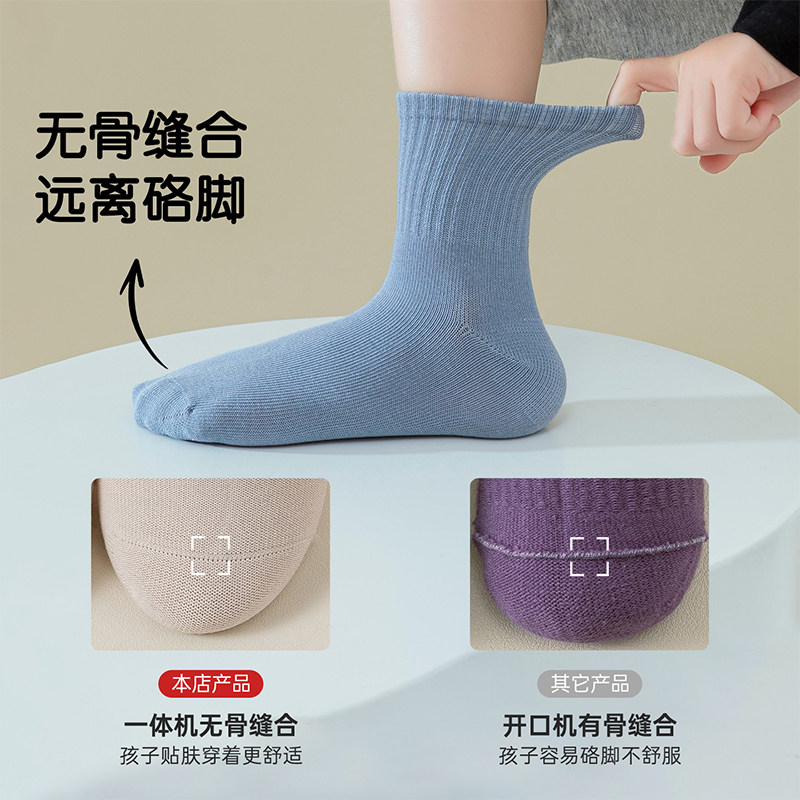 纯棉童袜春秋款夏季薄款防臭不起球男女袜子全棉中筒袜时尚儿童袜