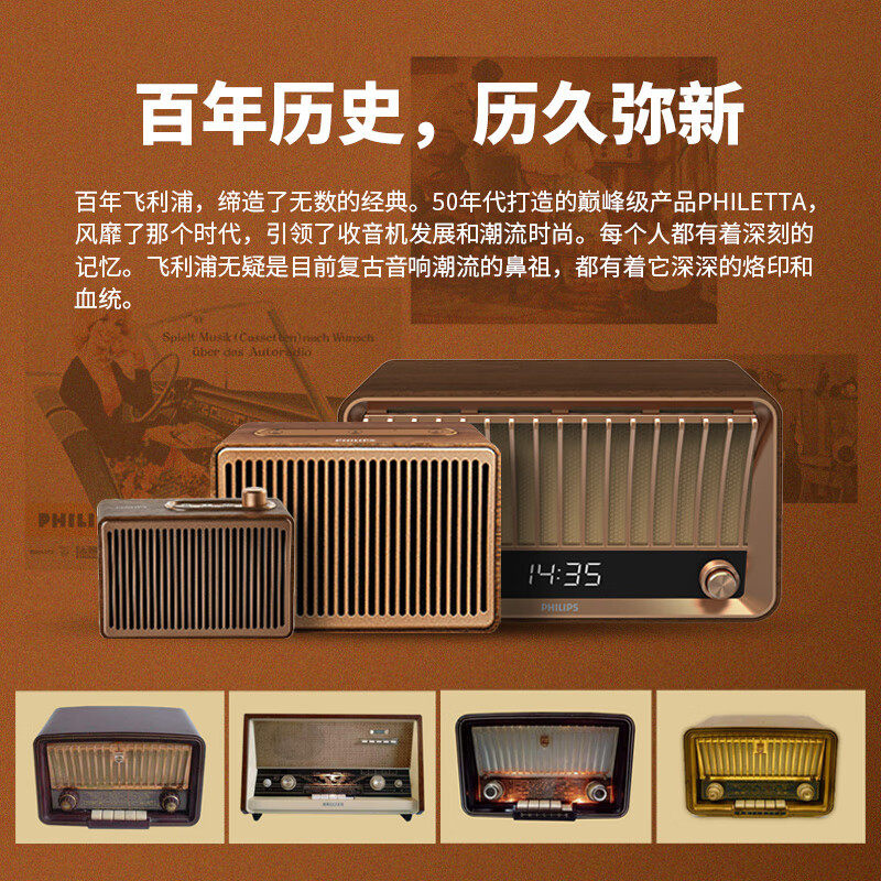 飞利浦TAVS500洛可可复古蓝牙音箱重低音音响家用桌面户外大功率