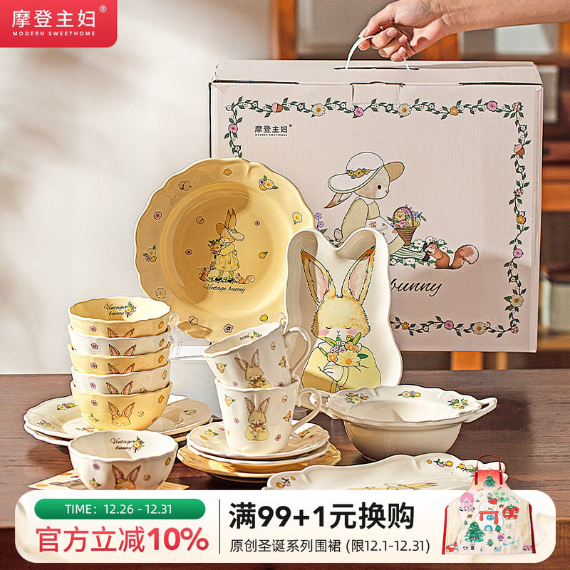摩登主妇赫拉兔餐具套装碗碟盘子碗具乔迁新居新婚结婚女生日礼物