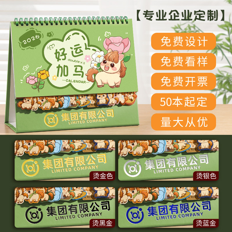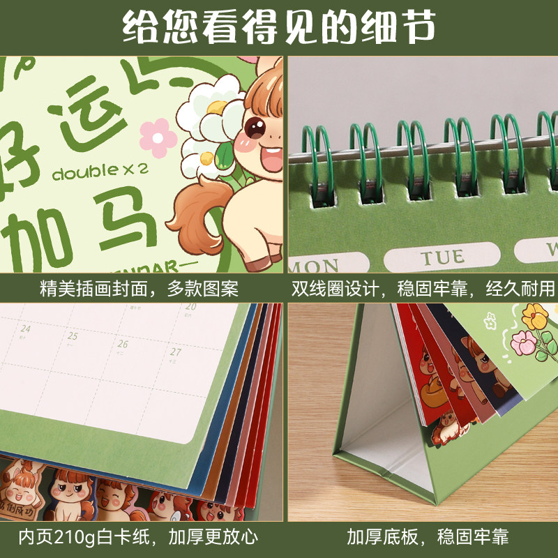 2026年新款台历定制可爱卡通工作计划日历办公室桌面摆件带索引多功能马年记事月历定制公司企业logo广告制作