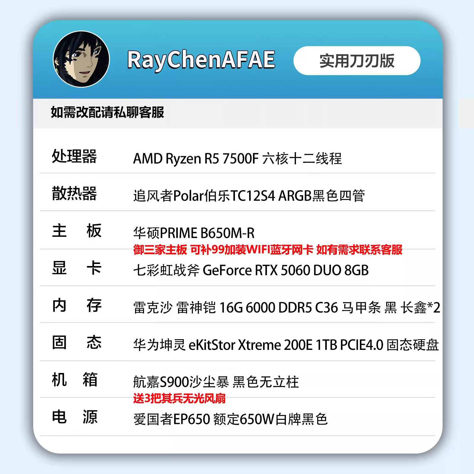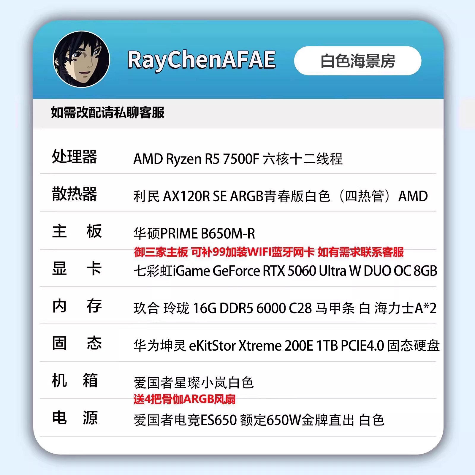 RTX5060 R5 7500F 高颜值纯白海景房高性能DIY游戏生产力电脑主机