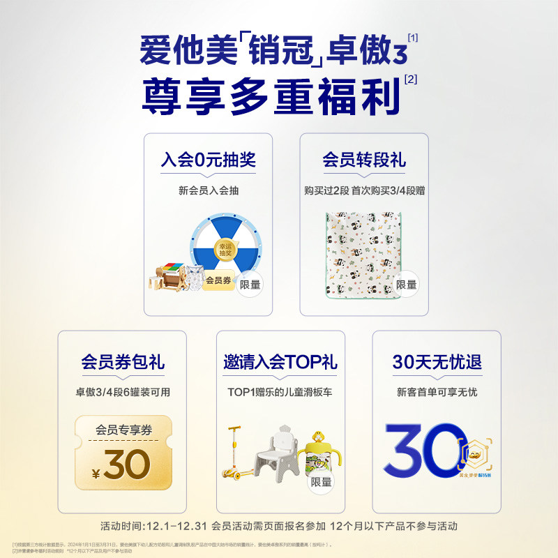 [爱他美官方旗舰店]卓傲3段幼儿配方奶粉800g*1罐12-36月