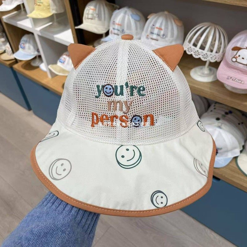 宝宝帽子夏季薄款大帽檐遮阳帽渔夫帽男女儿童防晒透气网帽太阳帽