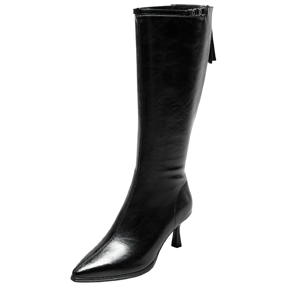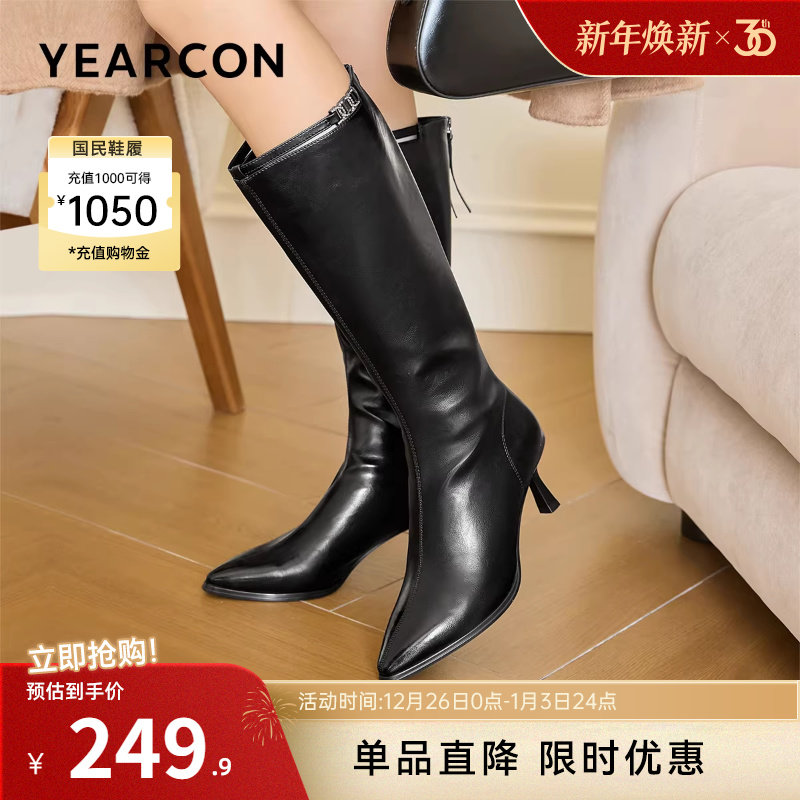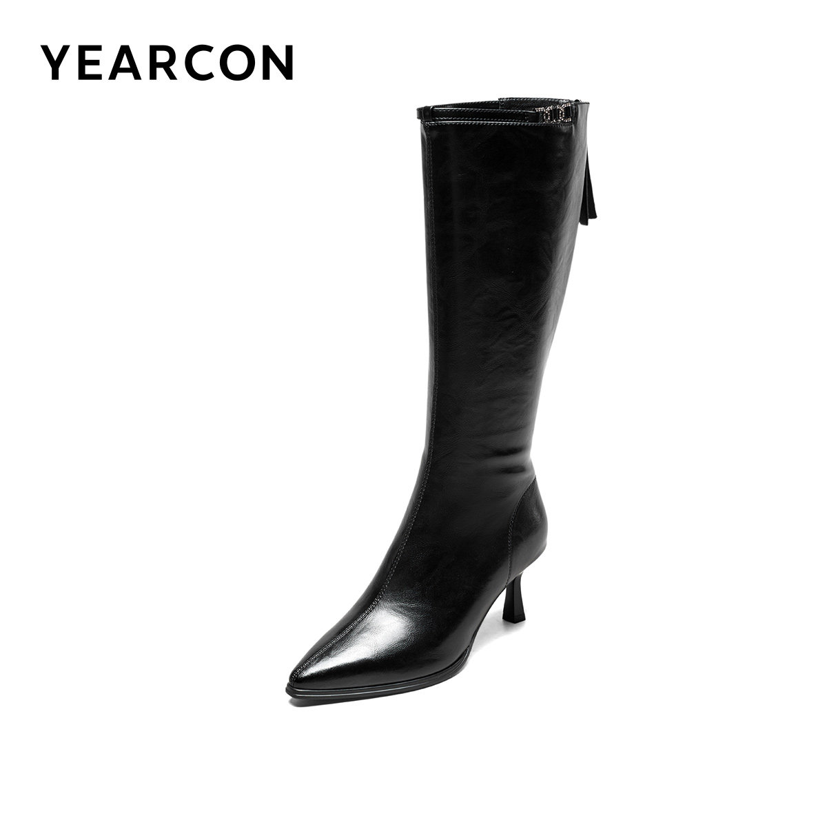 意尔康女鞋2025冬季法式长靴女士骑士靴不过膝细跟高筒靴尖头单靴