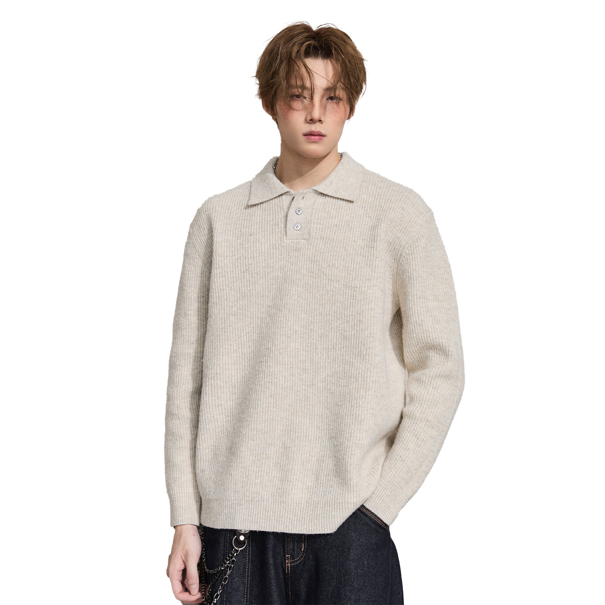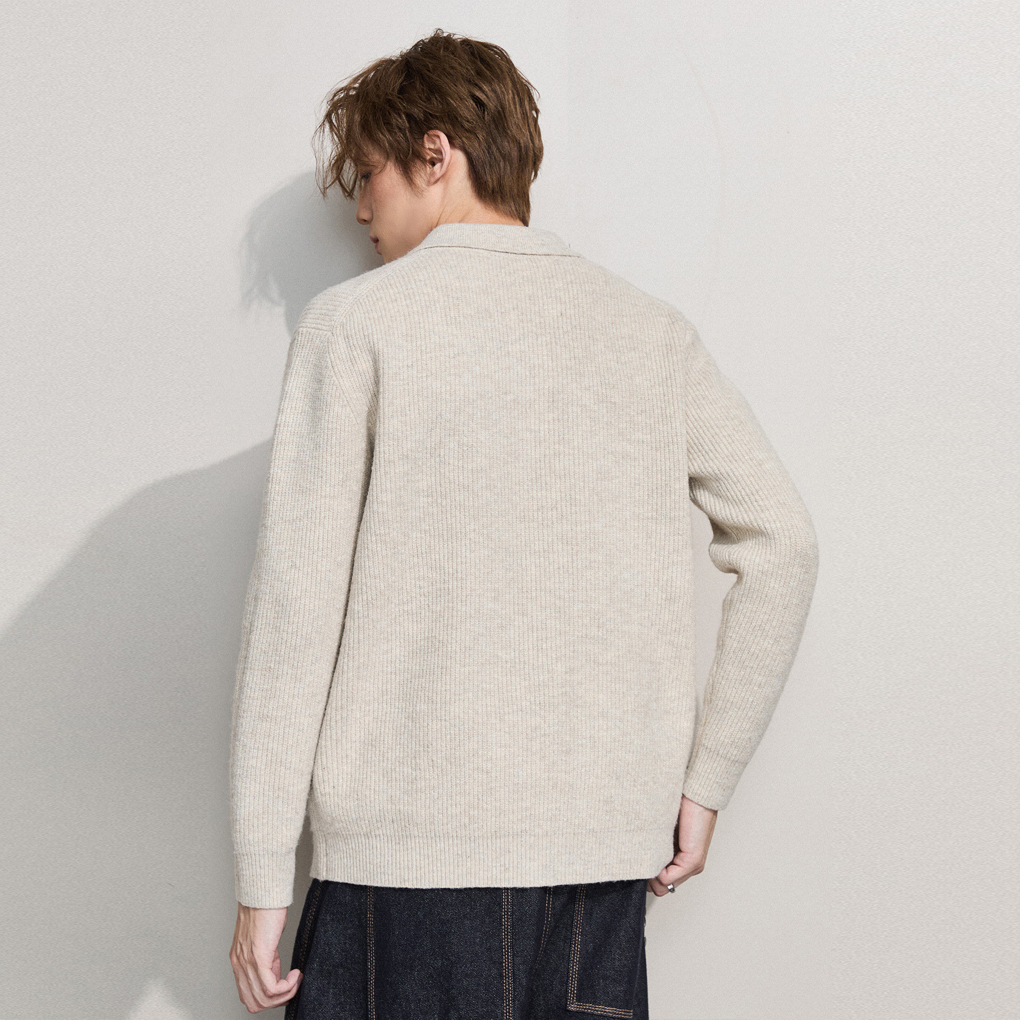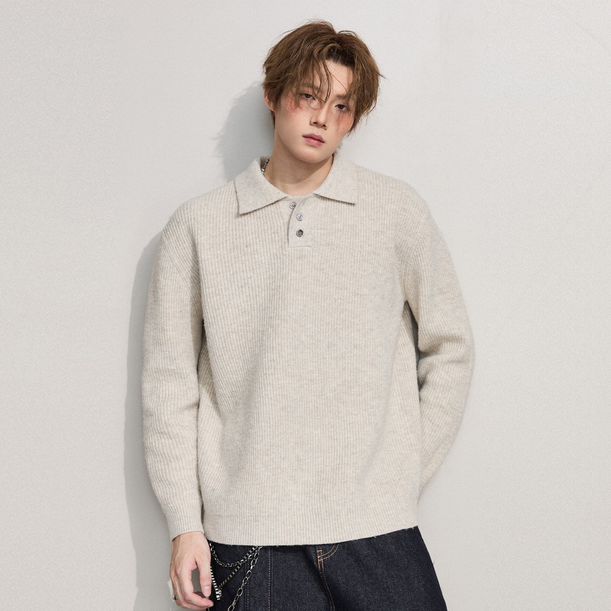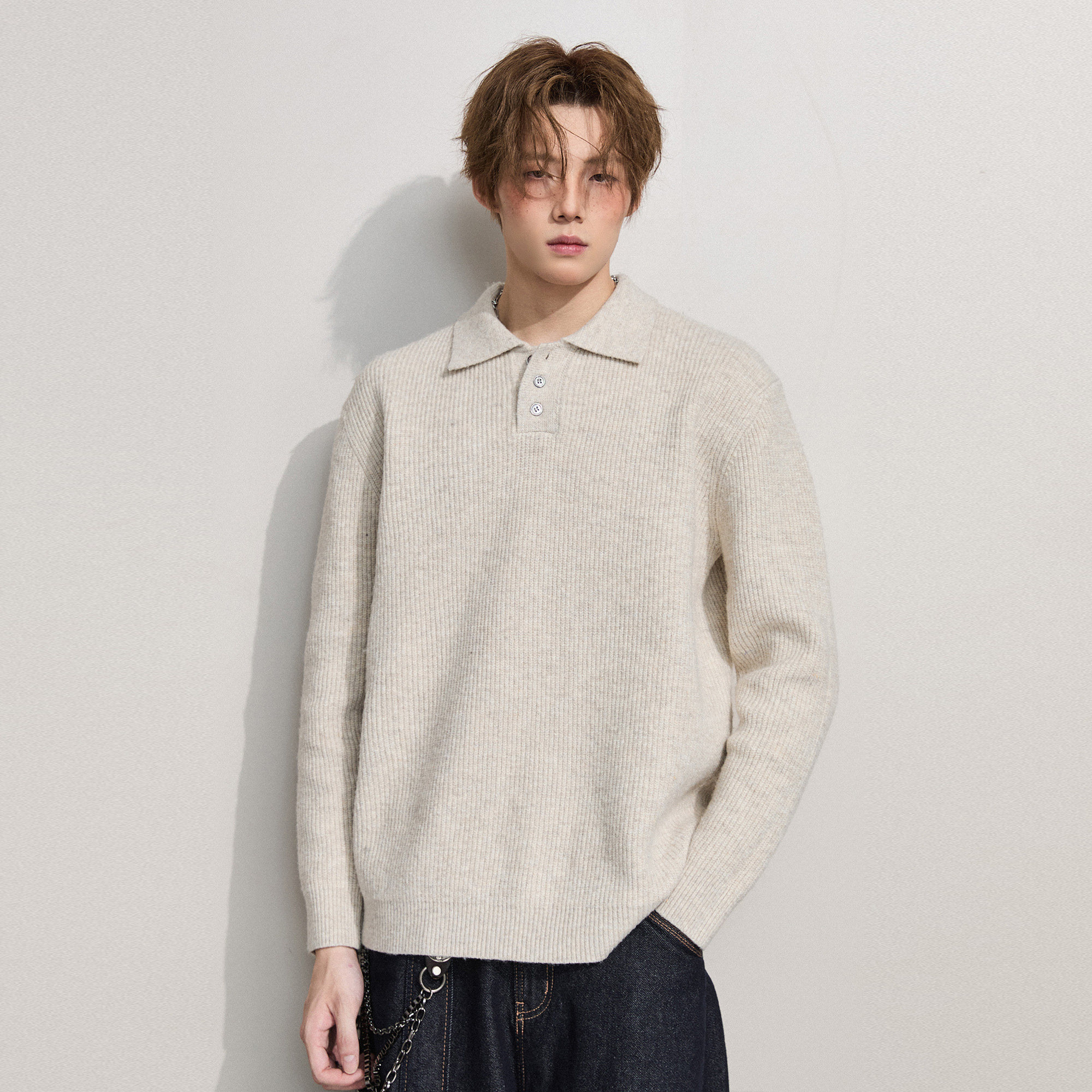 ALLIN 老钱风翻领毛衣男秋冬宽松POLO领针织衫含羊毛慵懒通勤外套