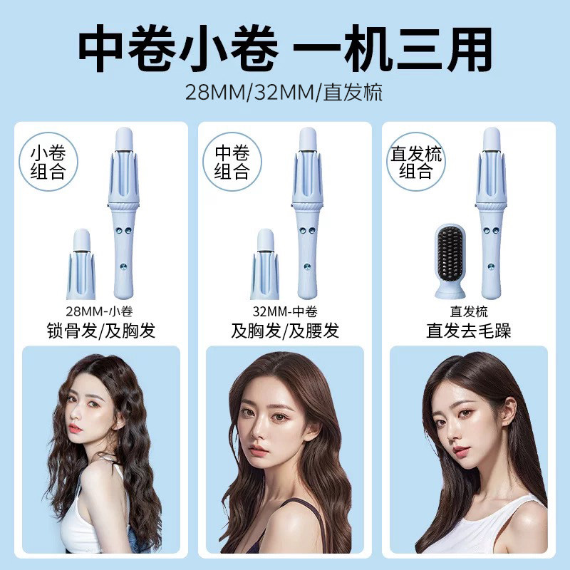 扬子全自动卷发棒32mm三合一卷直两用持久定型直发梳懒人宿舍神器