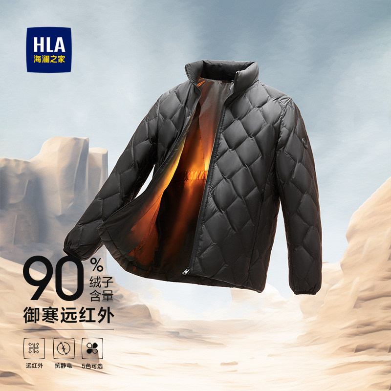 HLA/海澜之家运动25秋冬便携情侣轻薄排骨羽绒服内搭立领外套男女