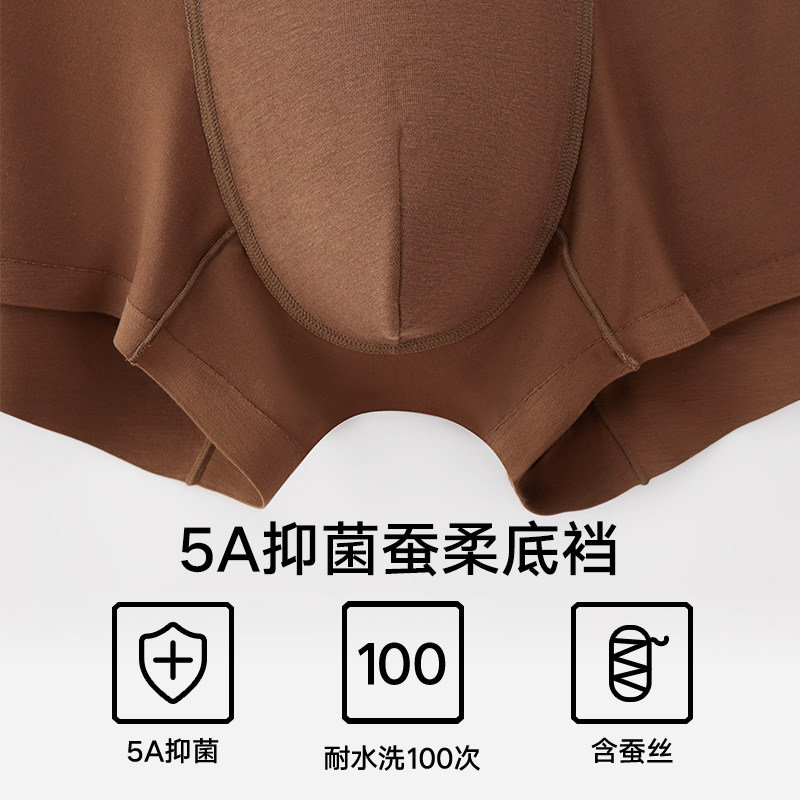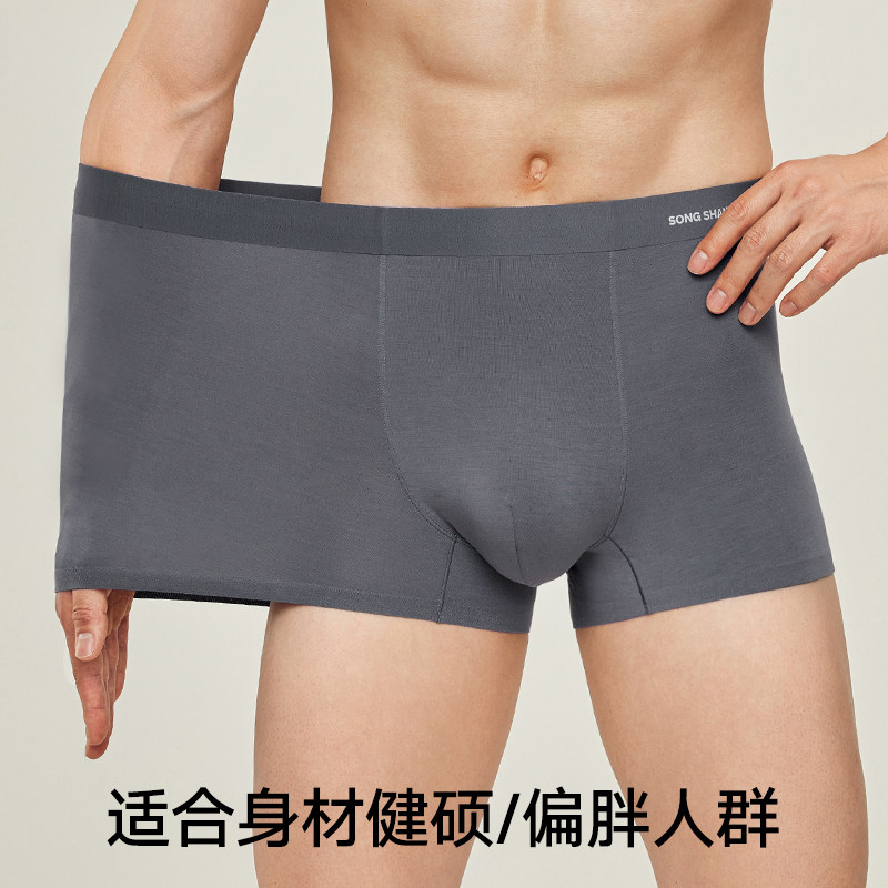 松山棉店男士大码内裤蚕柔莫代尔含蚕丝底裆抗菌轻薄无痕平角裤
