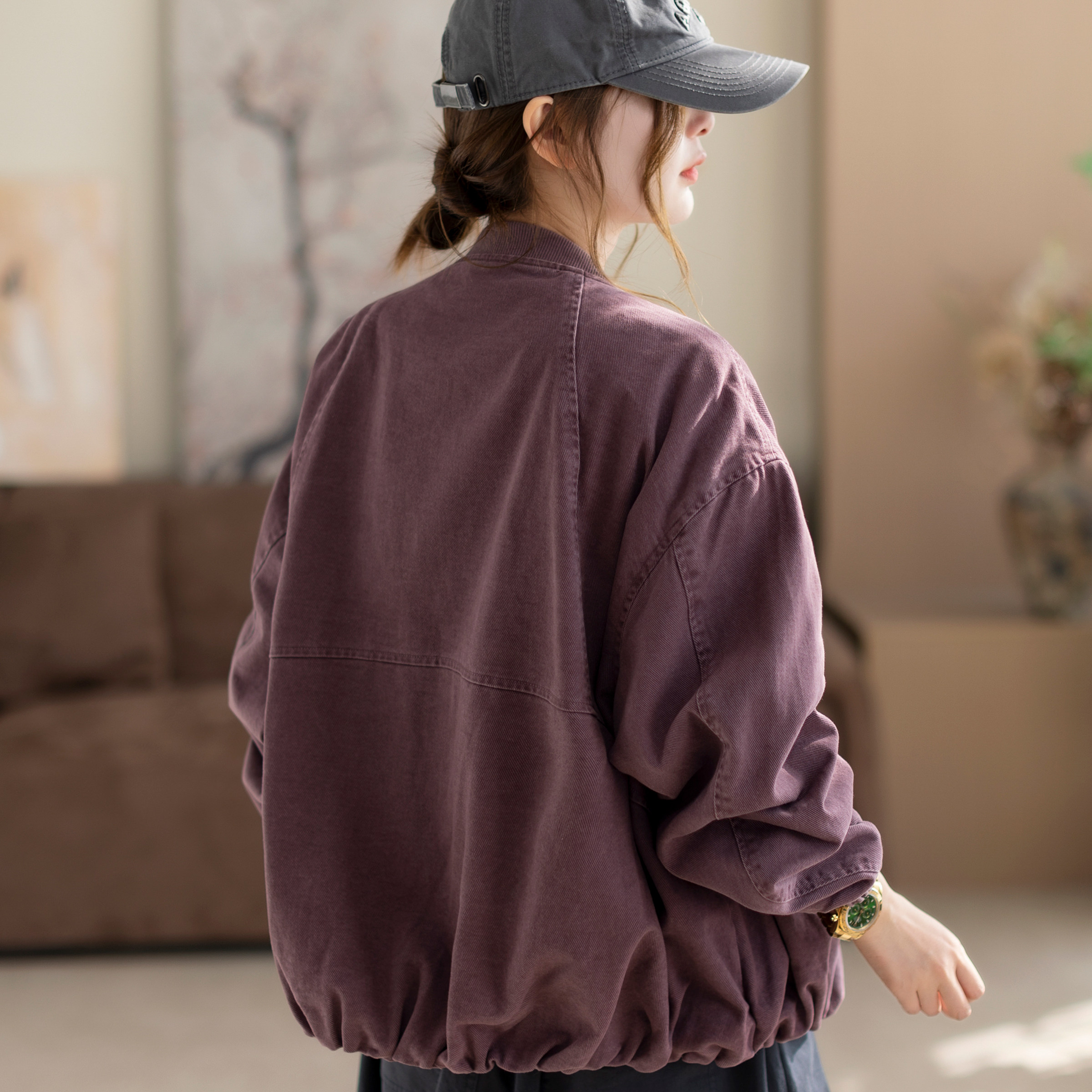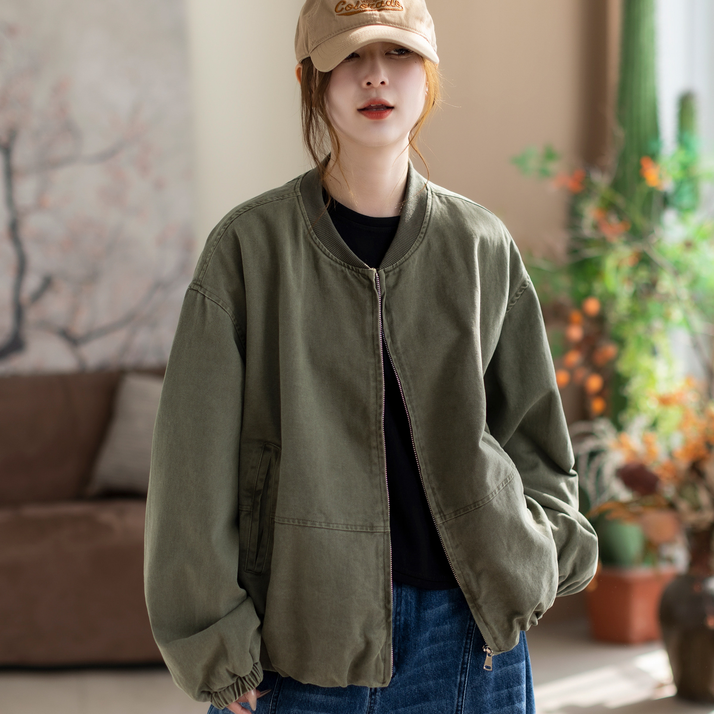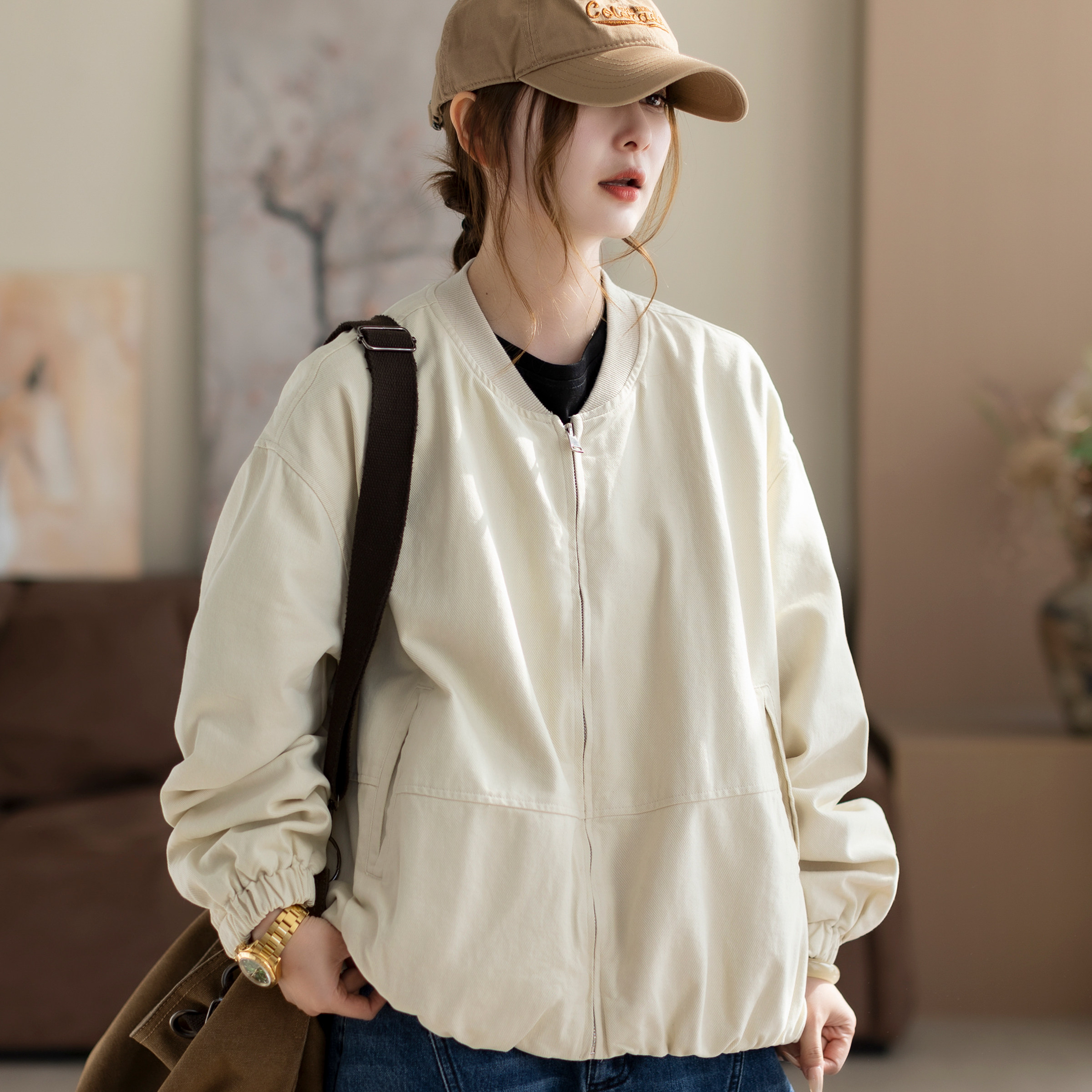 咖咪羽外套女春秋新款圆领女士宽松纯色通勤百搭气质流行女装上衣