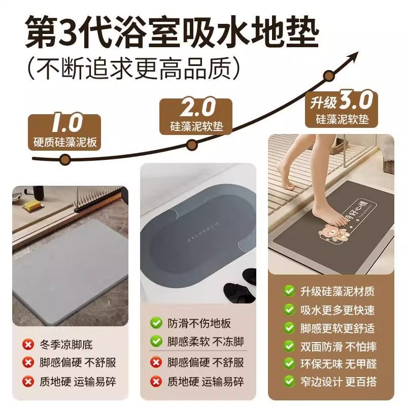 硅藻泥吸水地垫浴室卫生间门口进门入户防滑脚垫子洗手间厕所地毯