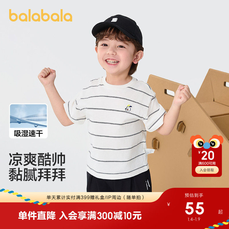 巴拉巴拉童装儿童t恤男童短袖女童宝宝上衣2025新款夏季吸湿速干