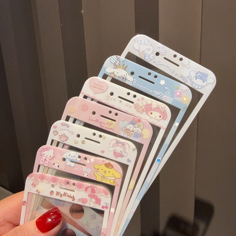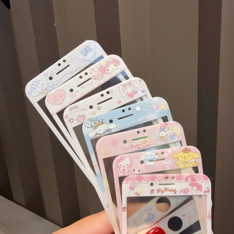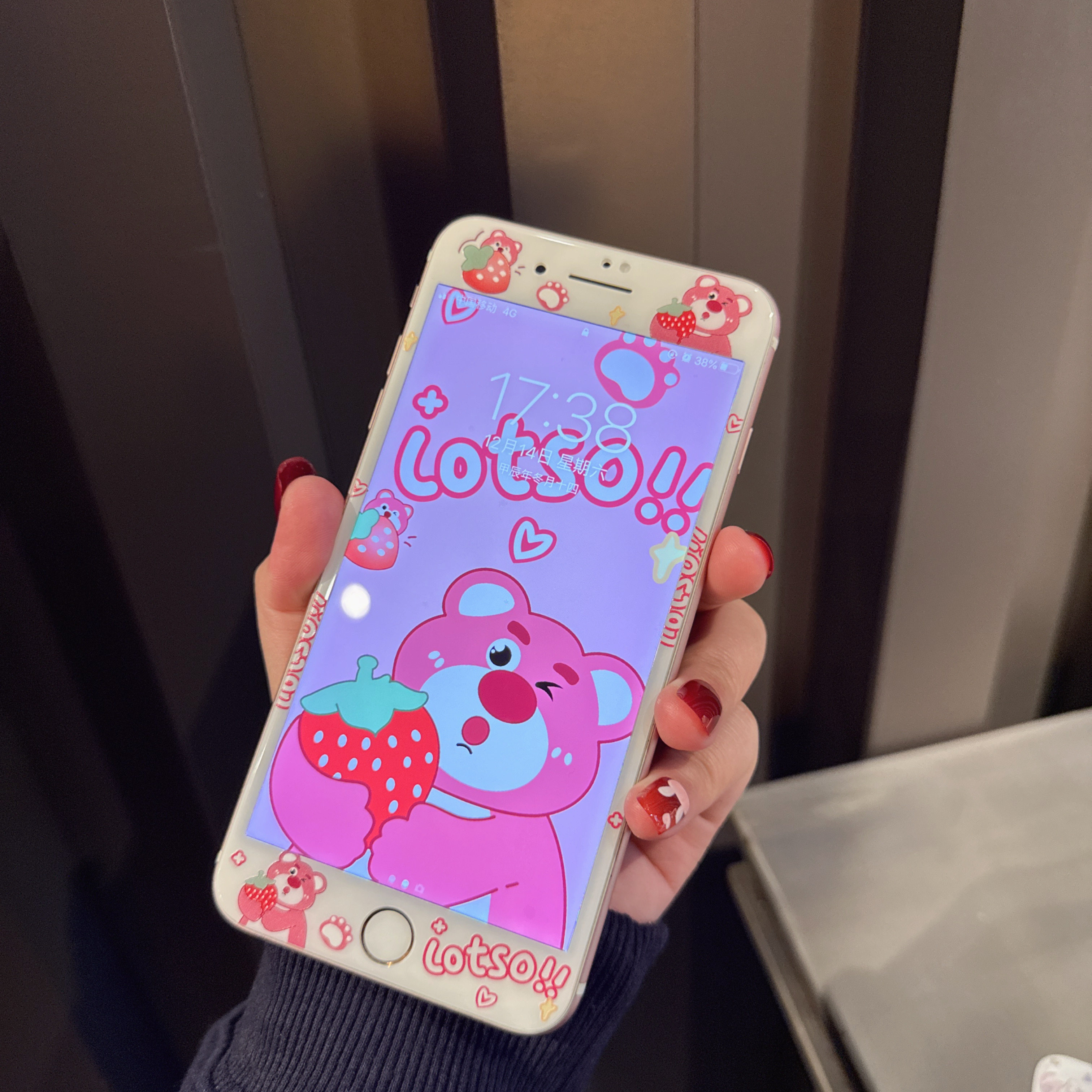 新可爱卡通4S适用苹果7Plus全屏手机贴膜iPhone6plus高清钢化玻璃se一代黑色白色粉色5s碳纤维软边8代SE2/3代