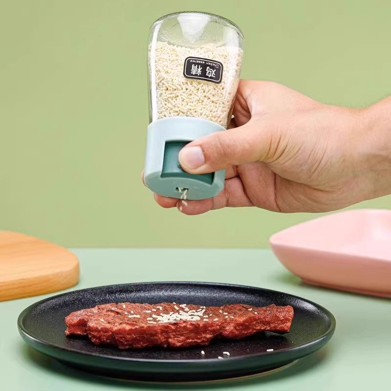 按压式定量盐罐调料盒调料罐玻璃厨房密封防潮盐调味瓶家用精准
