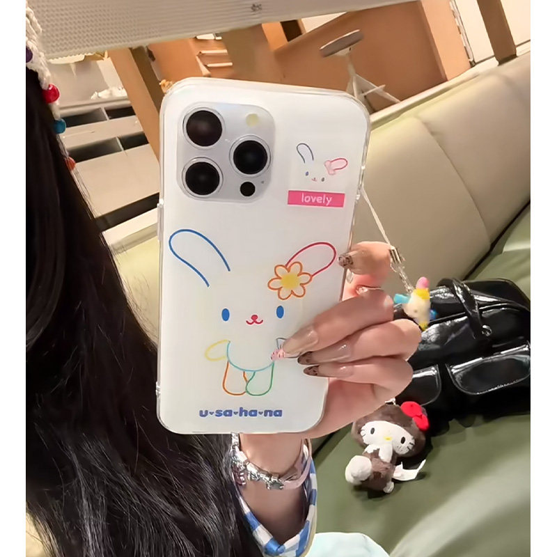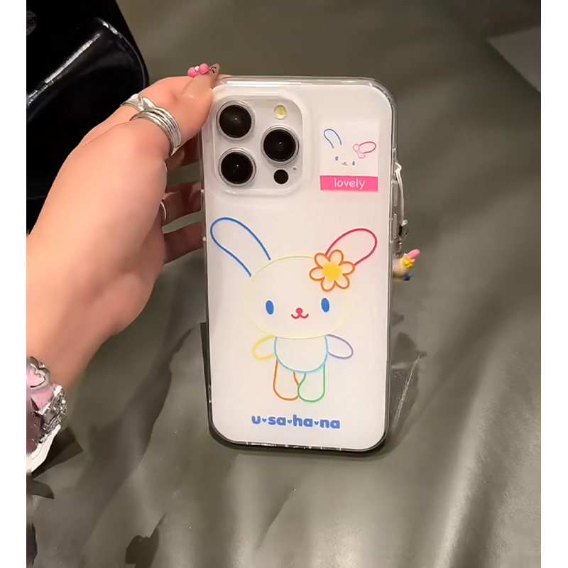 彩虹线条兔兔适用苹果16promax手机壳iphone13新款15pro华为mate70荣耀vivox200小米15OPPO全包双层防摔软套