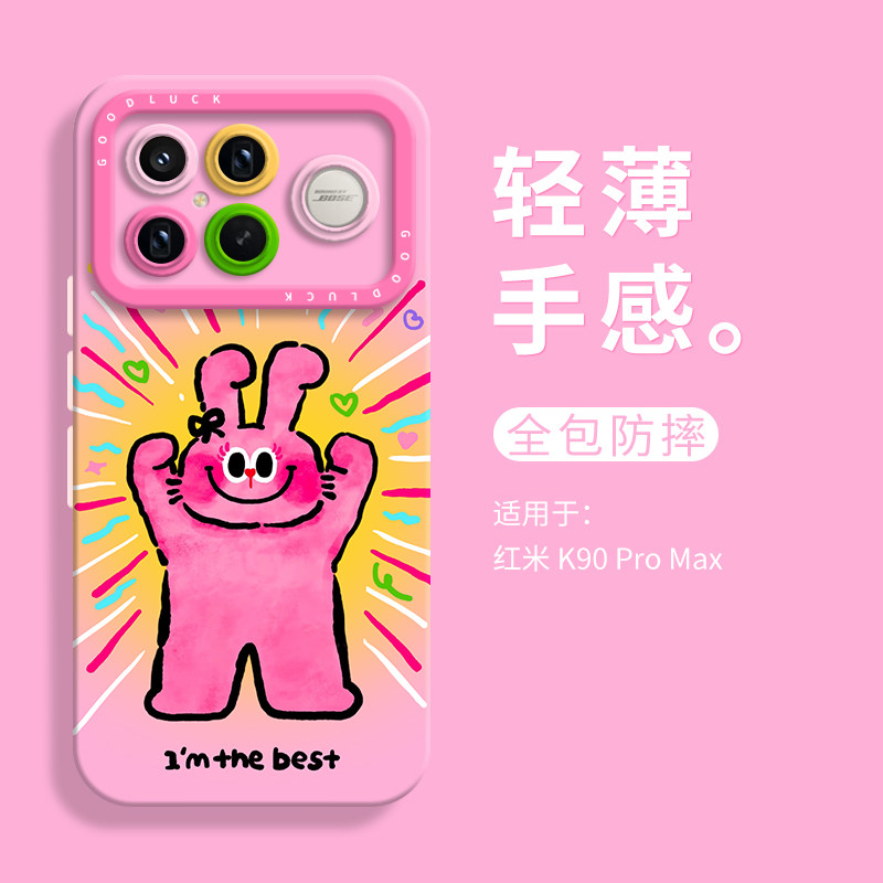 可爱自信兔兔适用小米红米k90promax瞳眼手机壳红米k90防摔Redmi K90pro液态硅胶软壳男女k90创意por卡通情侣