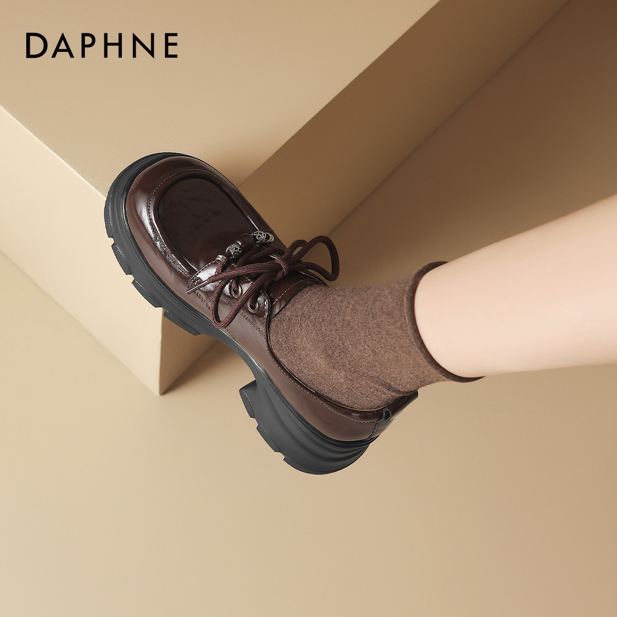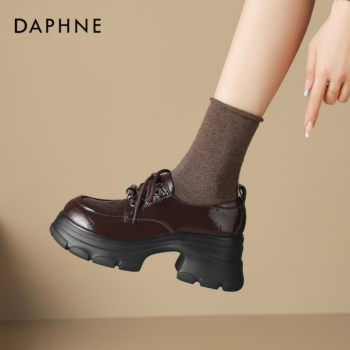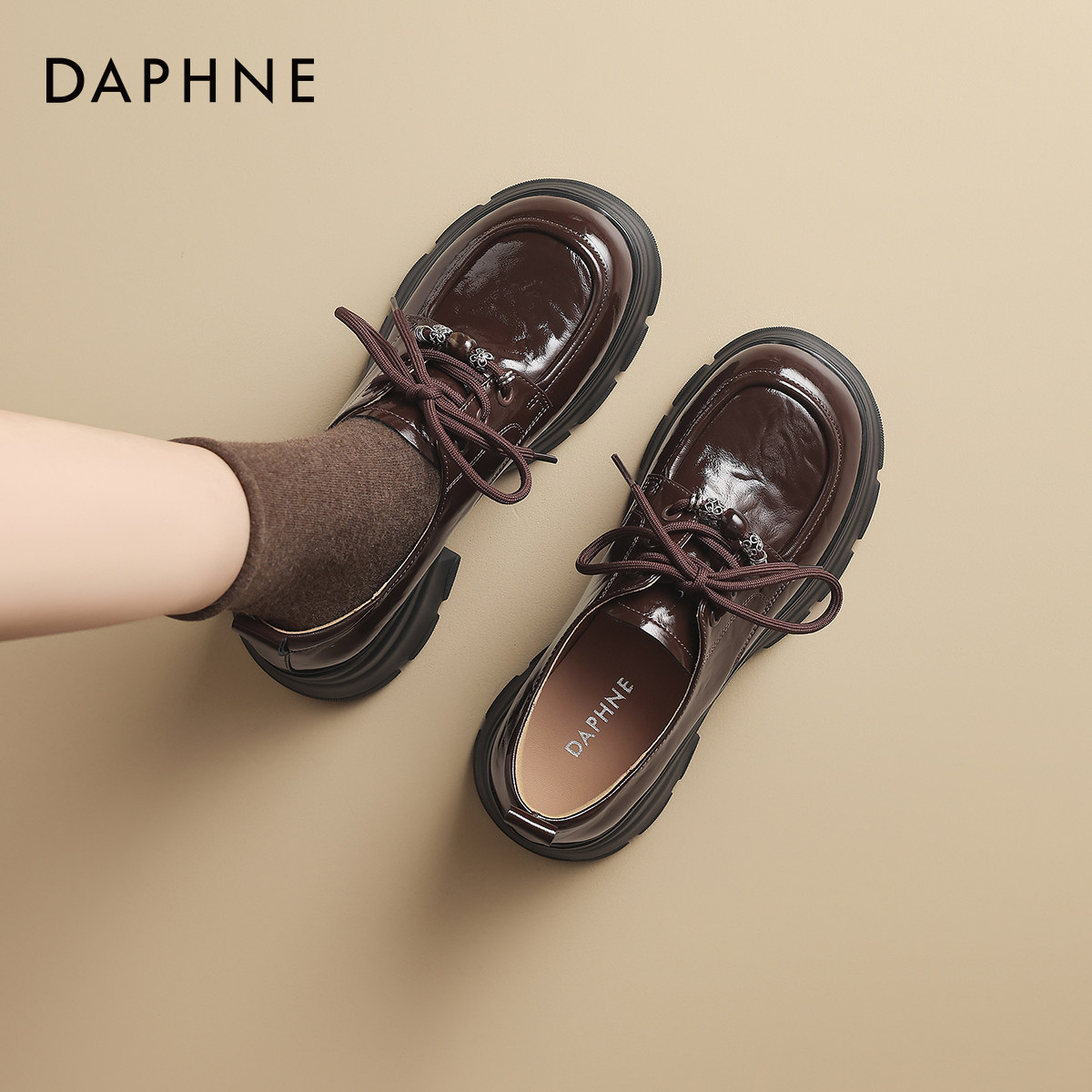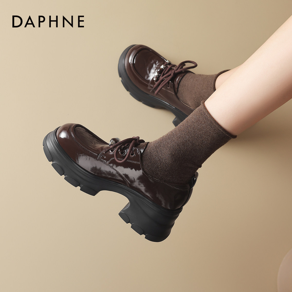 达芙妮棕色厚底乐福鞋女2026新款春季绝美小皮鞋一脚蹬豆豆鞋单鞋