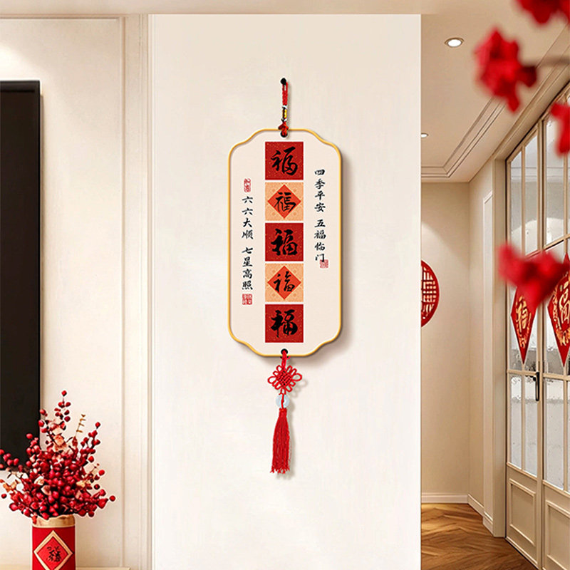 福禄平安客厅电视背景墙挂件装饰画新中式喜庆福字中国结挂饰壁画