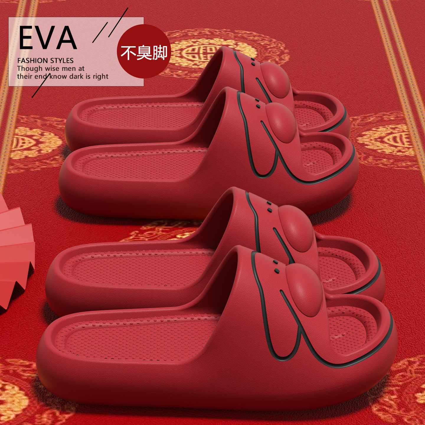 赛眸本命年拖鞋女2026新款室内居家洗澡红色EVA凉拖鞋男厚底防滑