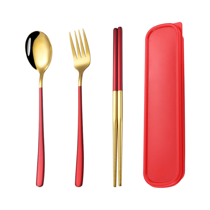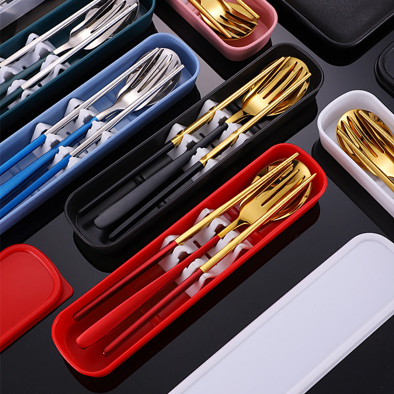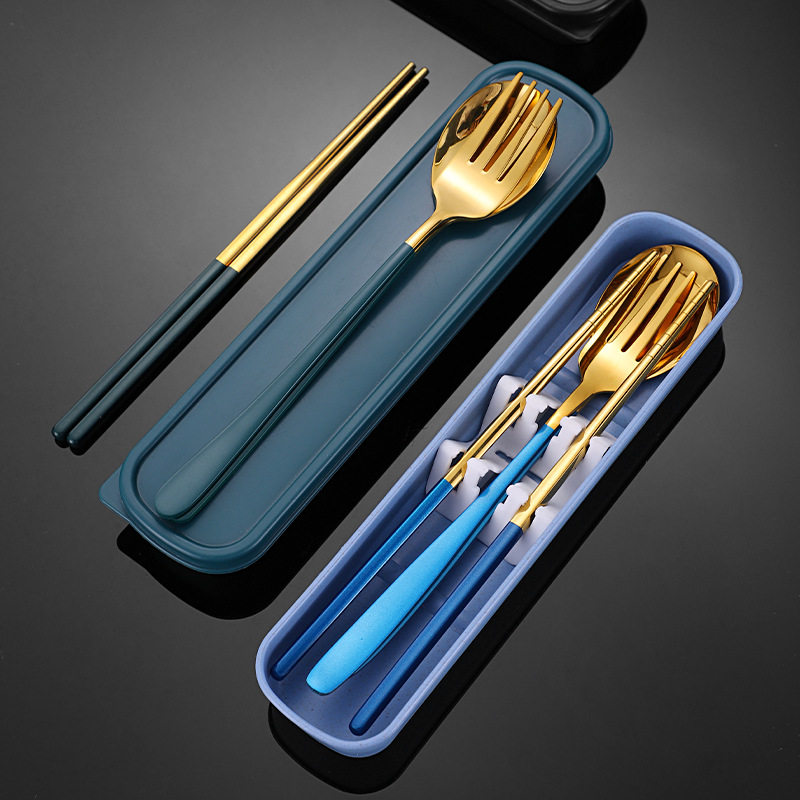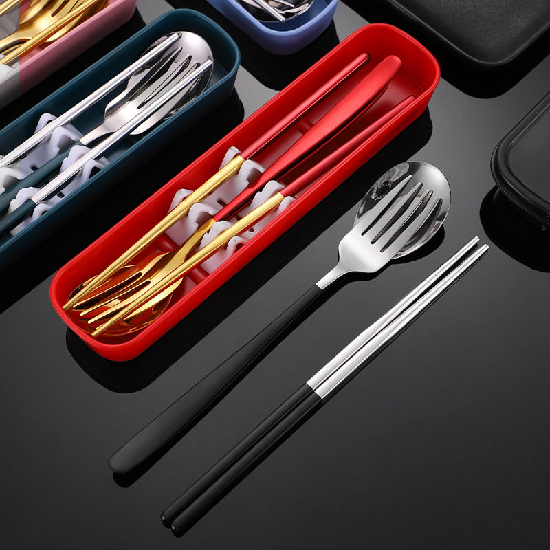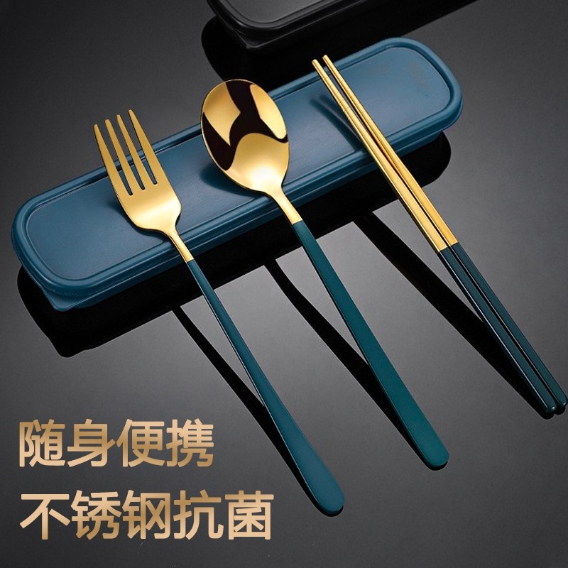 不锈钢筷子勺子餐具套装单人装便携收纳盒便携式餐具盒叉子三件套