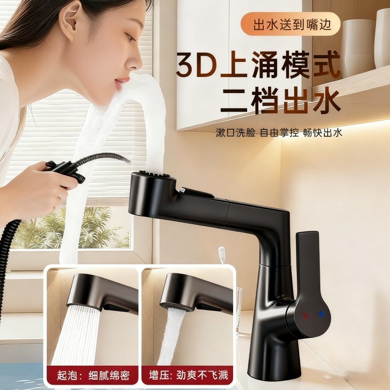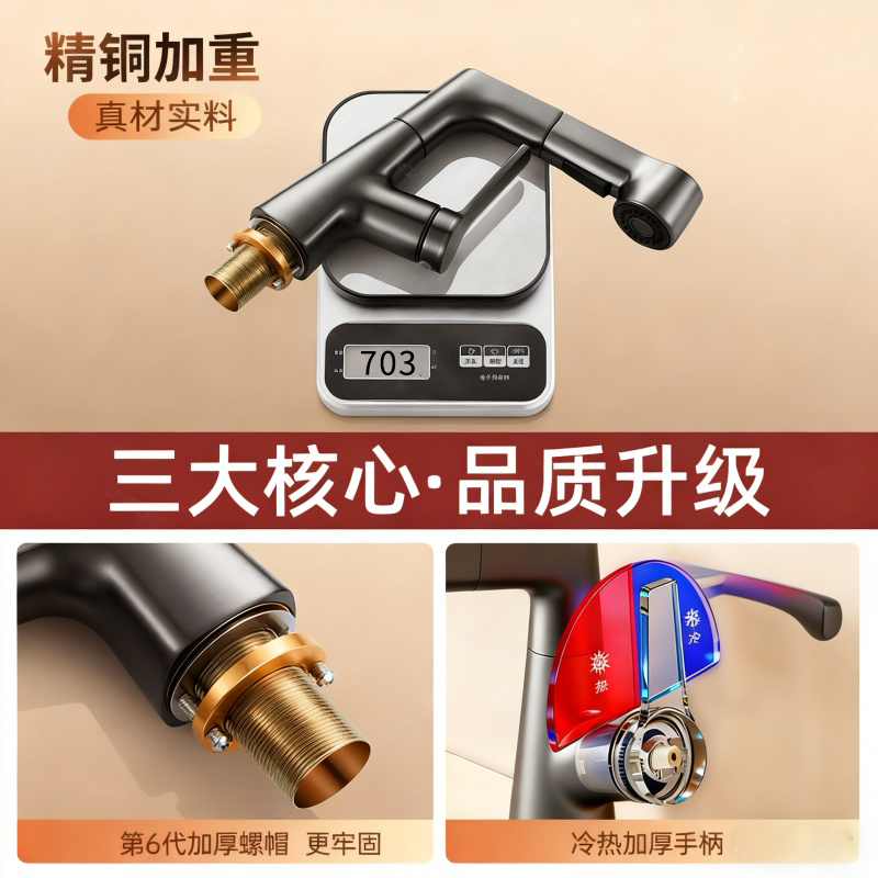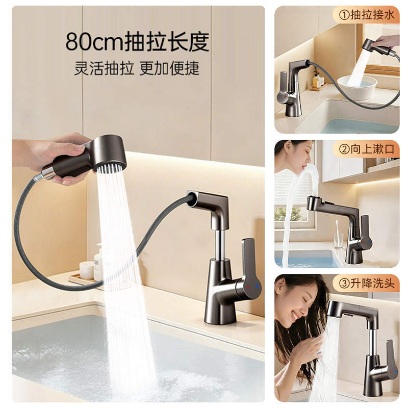 洗脸盆水龙头洗手盆抽拉冷热卫生间面盆浴室柜台盆家用加长全铜