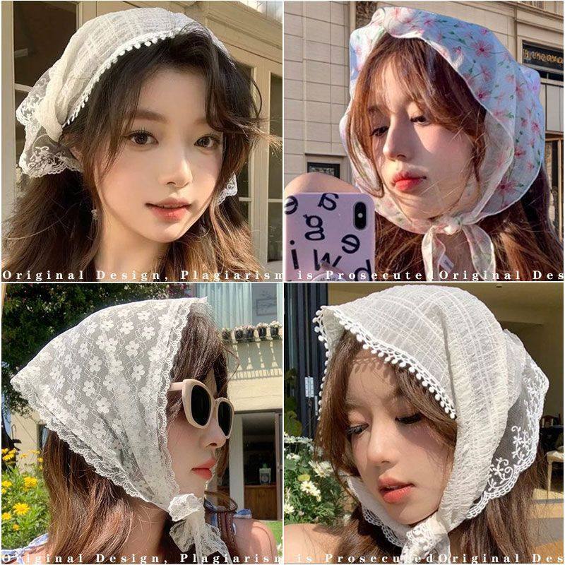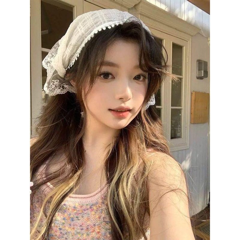 白色蕾丝花边懒人发箍头巾2025新款法式田园风三角巾一体甜美发饰
