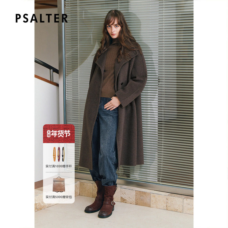 诗篇专选羊毛骆驼绒立领减龄双面呢大衣长款毛呢外套2025冬季新款