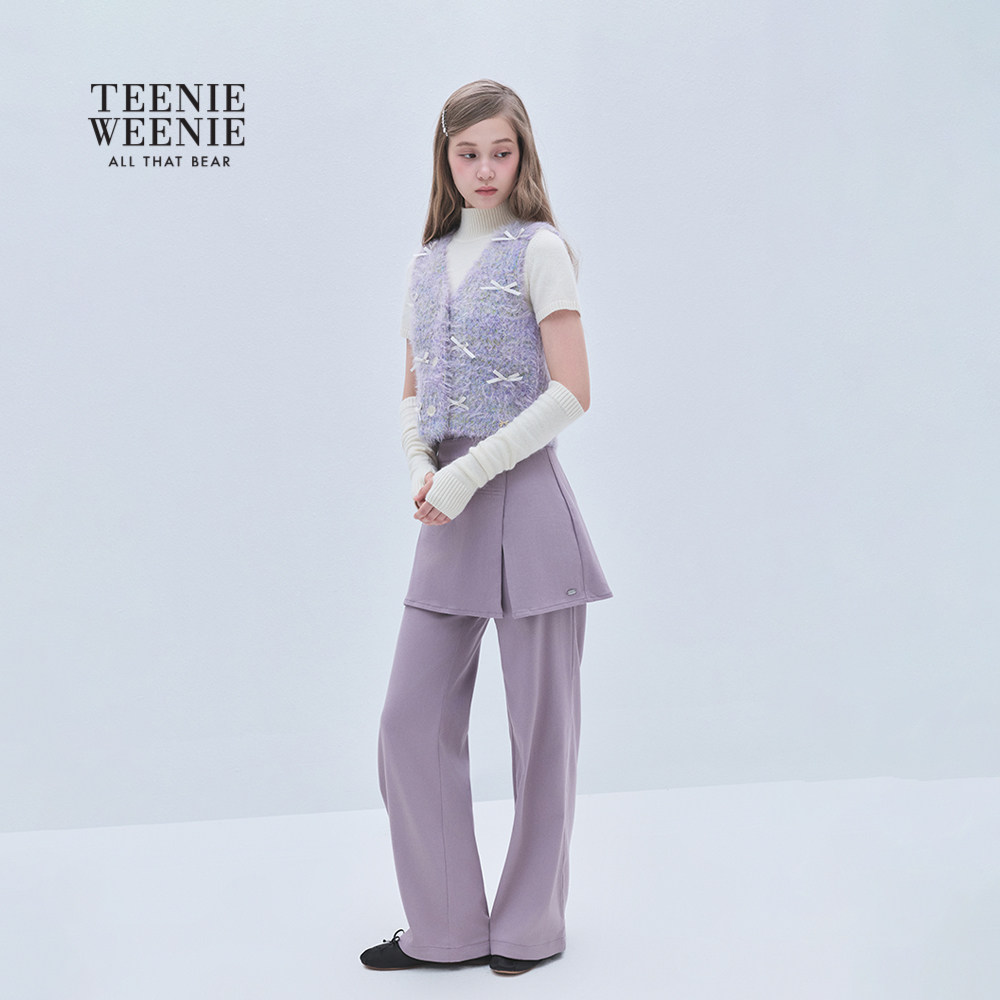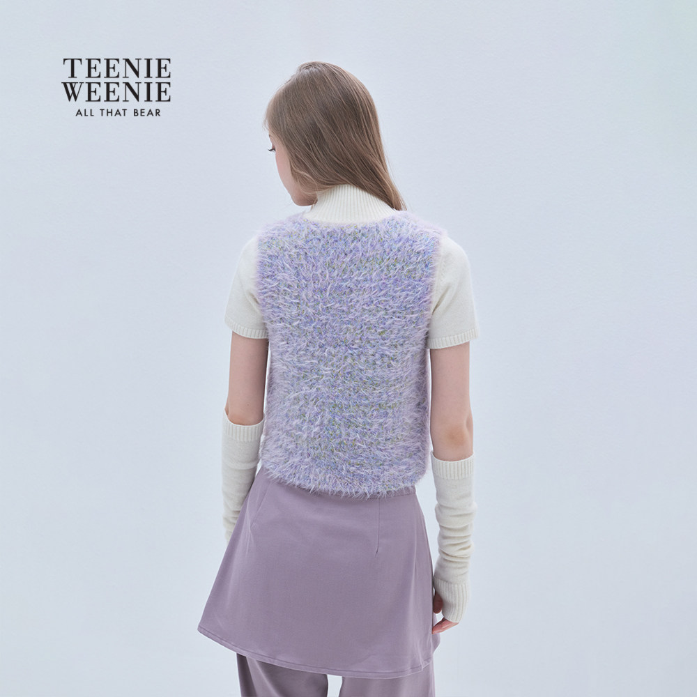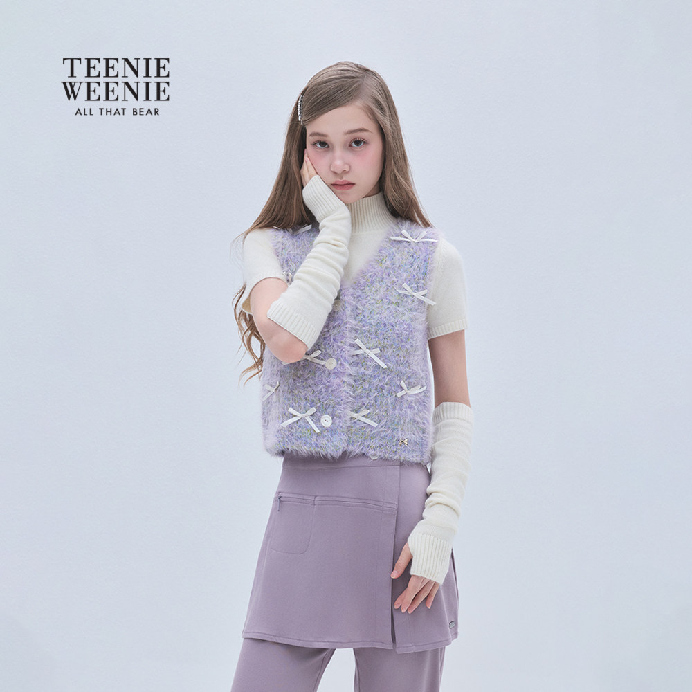 TEENIEWEENIE bearnova25冬新款甜美蝴蝶结装饰仿貂毛V领背心开衫