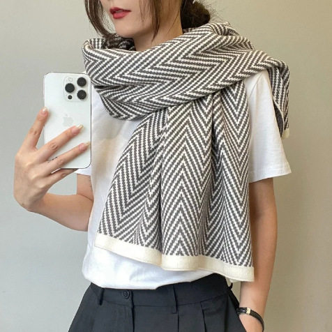 雪花双面针织围巾女秋冬季韩系氛围感加厚保暖高级感围脖复古披肩