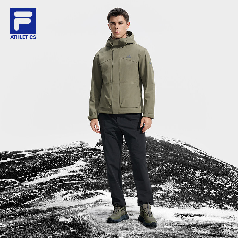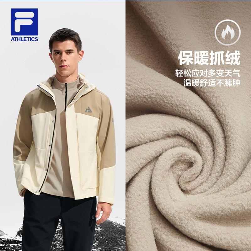 FILA斐乐官方男上衣两件套25冬新户外运动基础连帽抓绒三合一外套